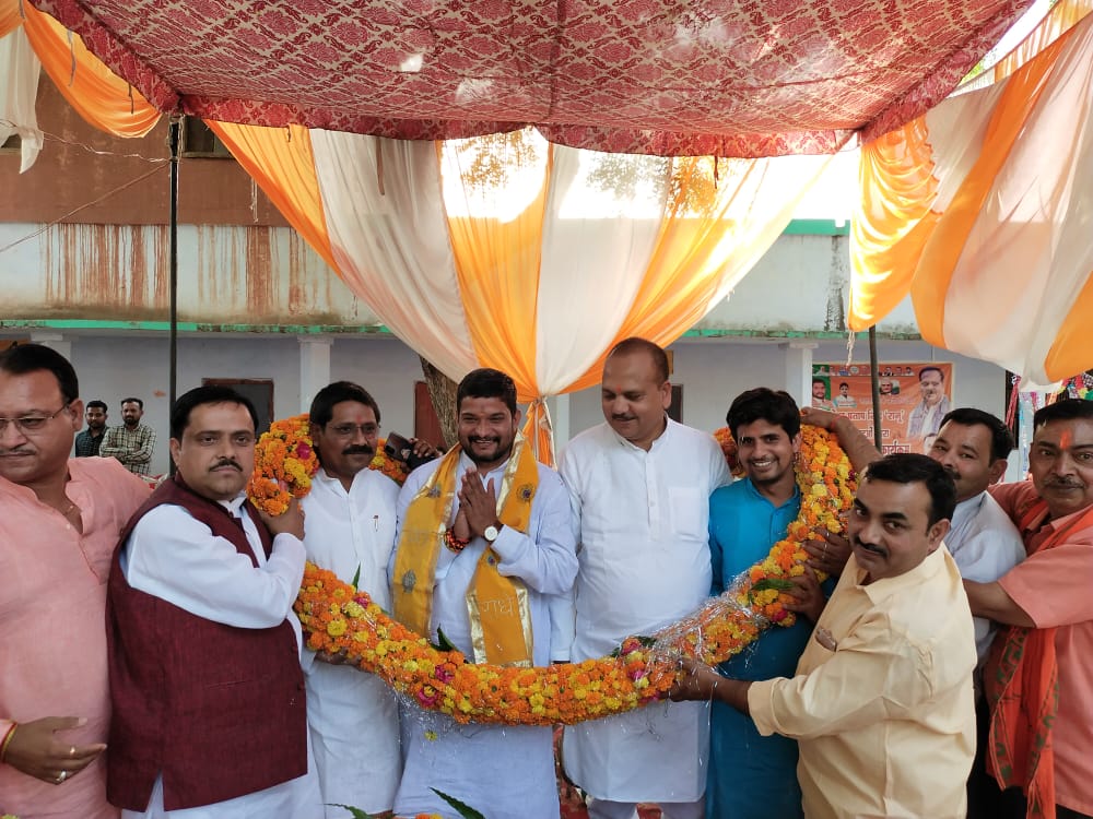 भाजपा विधायक और जिलाध्यक्ष को लड्डू से कार्यकर्ताओं ने तौलकर तलवार भेंट की