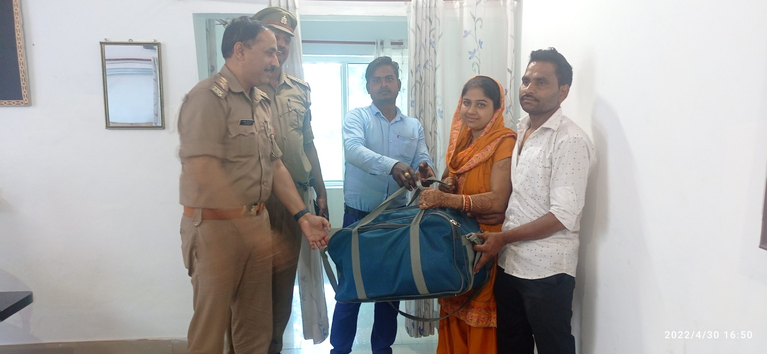 प्रभारी निरीक्षक कोतवाली देहात गंगेश शुक्ला और पिहानी चुंगी चौकी इंचार्ज कप्तान सिंह की सक्रियता की बदौलत ईमानदारी से मिला बैग