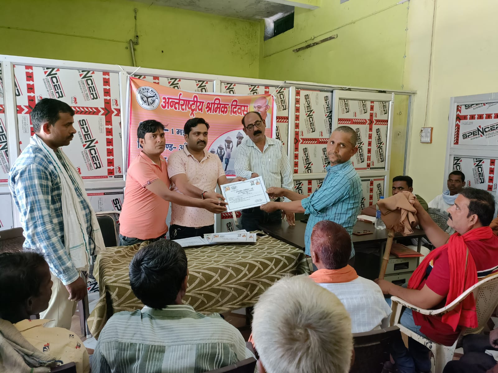 हरदोई।उपायुक्त मनरेगा प्रमोद कुमार चंद्रौल ने बताया है कि शासन की मंशानुरूप आज मल्लावां ब्लॉक के ग्राम पंचायत सुमेरपुर में मनरेगा दिवस मनाया गया। ग्राम प्रधान द्वारा श्रमिकों को 100 दिन रोजगार पूर्ण किए हुए श्रमिकों को सम्मानित किया गया अंग वस्त्र व माला मिठाई खिलाकर सम्मानित किया। प्रधान प्रतिनिधि श्री अभिषेक दीक्षित जी ने अन्तर्राष्ट्रीय श्रमिक दिवस पर श्रमिको का कराया सम्मान। समाजसेवी श्री नरेश दीक्षित जी ने सभा में मौजूद सभी श्रमिको को माल्यार्पण कर मुंह मीठा कराया और सभी का सम्मान करते हुए उपहार भी भेंट किए।