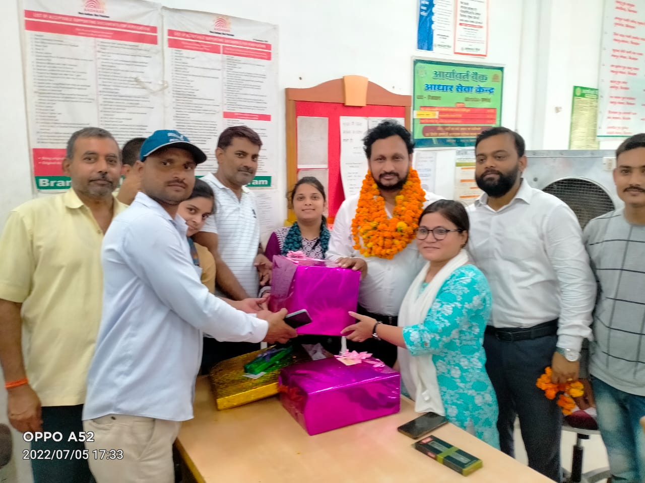 आर्यावर्त बैंक के शाखा प्रबंधक को दी गई भावभीनी विदाई