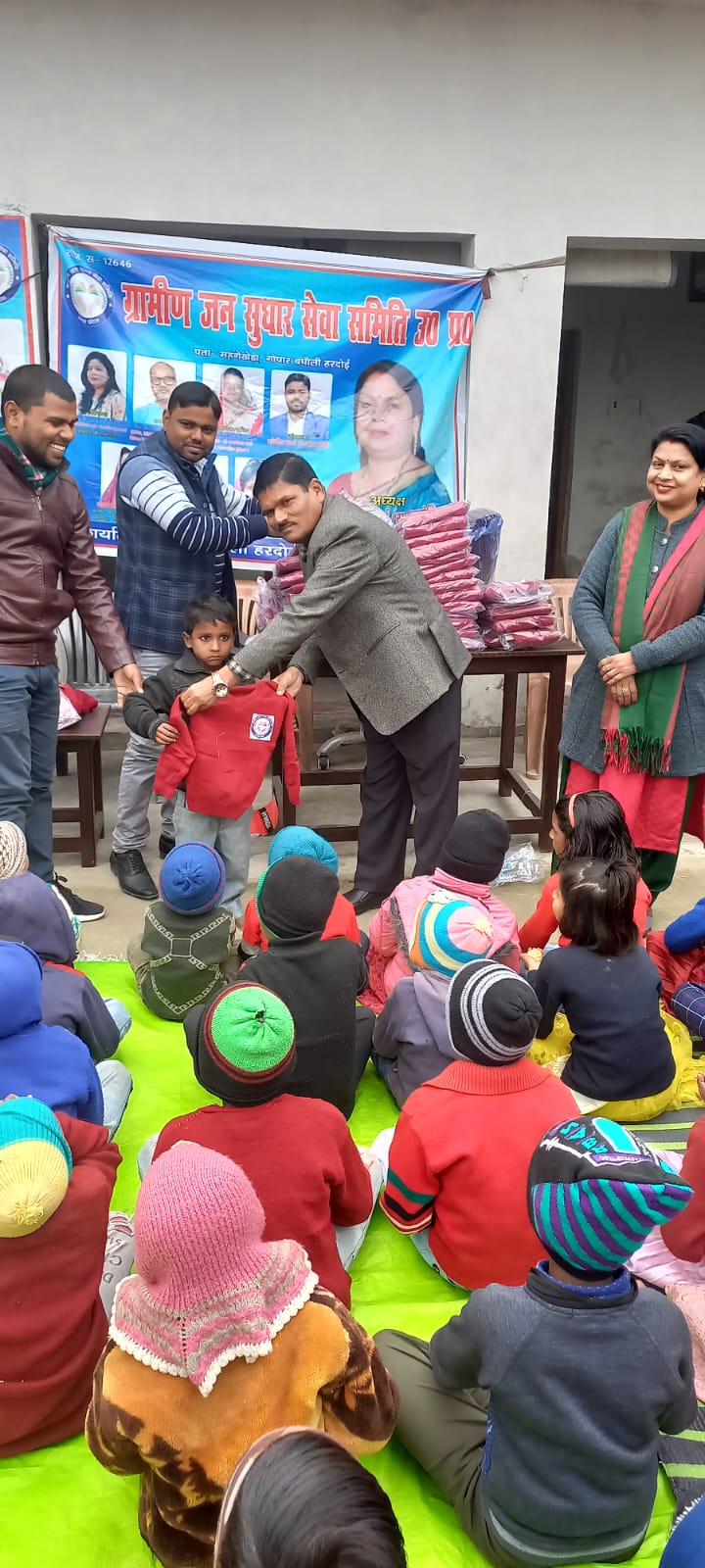 हरदोई।ग्रामीण जन सुधार सेवा समिति उत्तर प्रदेश द्वारा संचालित ग्राम महँगेखेड़ा गोपार,बघौली में निःशुल्क कोचिंग पर समिति के द्वारा बच्चों को निःशुल्क स्वेटर वितरित किये गए, जिसमे मुख्य अतिथि डॉ अनिल वर्मा संयुक्त निदेशक स्वास्थ्य विभाग व डॉ अशोक कुमार फिजिशियन (चिकित्सा अधिकारी) रहे। कार्यक्रम में समिति की अध्यक्ष श्रीमती शशी वर्मा व उपाध्यक्ष श्रीमती रोली वर्मा व प्रबंधक/सचिव श्रीमती मिथिलेश वर्मा, कोषाध्यक्ष संजीव वर्मा व सभी शिक्षक राजकुमार,सुरेश चंद्र व रामभक्त वर्मा,आशुतोष वर्मा,अश्विनी कुमार, दीपक वर्मा,सरवन वर्मा आदि गांवों के लोग उपस्थित रहे।स्वेटर पाकर बच्चे व अभिभावक बहुत खुश हुए।