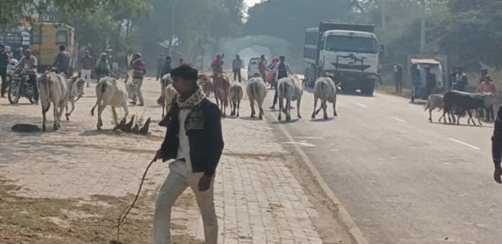 बेनीगंज/हरदोई_ सड़क से लेकर खेतों तक निराश्रित गौवंश का जमावड़ा लगा हुआ है। खेतों में घुसकर गौवंश फसलों को चौपट कर रहे हैं, इससे किसानों को नुकसान ही नहीं हो रहा बल्कि पहरेदारी को भी मजबूर हो गए हैं। तमाम गांव में रात रात भर जागकर किसान खेतों से पशुओं को खदेड़ने में लगे रहते हैं। वहीं सड़कों पर घूम रहे गौवंश से राहगीरों को हादसे का खतरा बना है। इस क्षेत्र के सिर्फ गांव ही नहीं बल्कि कस्बे की मुख्य सड़क पर गौवंश घूमते नजर आ रहे हैं। निराश्रित गौवंश के लिए प्रशासन की ओर से तमाम इंतजाम किए गए। गोशालाएं खोली गईं, गौ संरक्षण केंद्र और कान्हा पशु आश्रय स्थल खोले गए लेकिन ये तमाम इंतजाम अब नाकाफी साबित हो रहे हैं। बेनीगंज क्षेत्र में कोई भी सड़क या गांव ऐसा नहीं हैं, जहां निराश्रित गौवंश घूमते ना मिले। अब तो हालात यह हैं कि मजबूर किसान गांवों से गौवंश को घेर कर कस्बे की कान्हा गौशाला के पास में छोड़ आते हैं, जिससे गौशाला कर्मचारियों एवं किसानों के मध्य नोक झोंक होना सगल बन गया है व्यवस्थापक मिलन तिवारी के अनुसार गौशाला में 200 गौवंश मौजूद है अब अधिक नहीं रखे जा सकते फिर भी किसान अधिक संख्या में गौवंशों को घेर कर लाते हैं और गौशाला के बाहर मुख्य सड़क मार्ग पर चहल कदमी कराते हैं जिससे आवागमन बाधित होने का डर बना रहता है। घेरकर गौशाला तक लाने वाले गौवंशों को देख रास्ते में किसानों के बीच आपसी विवाद भी होता देखा जा रहा है। आवारा गौवंशों को इधर उधर छोड़ने का क्रम चल रहा है। हद तो तब हो जाती है जब पालतू पशुओं को छोड़ने महिला किसान गौशाला के बाहर पहुंच जाती हैं। जिन्हें बेरंग लौटना पड़ता है सड़कों पर यूं ही धूमते गौवंशों से वाहन चालकों को काफी सावधानी बरतनी पड़ती है। कस्बे के मुख्य चौराहे सहित गलियों में दिन भर आवारा पशुओं का जमघट लगा रहता है। छोटी बड़ी बाजार में आवारा पशुओं का ठंड के चलते मरने का भी सिलसिला जारी है। जिन्हें आवारा कुत्ते अपना निवाला बनाते देखे जा सकते हैं। यह कस्बे में व्यापारियों के लिए मुसीबत बन रहे हैं।