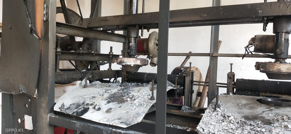 दोना पत्तल गोदाम में लगी आग मशीन वा कच्चा माल जलकर हुआ राख