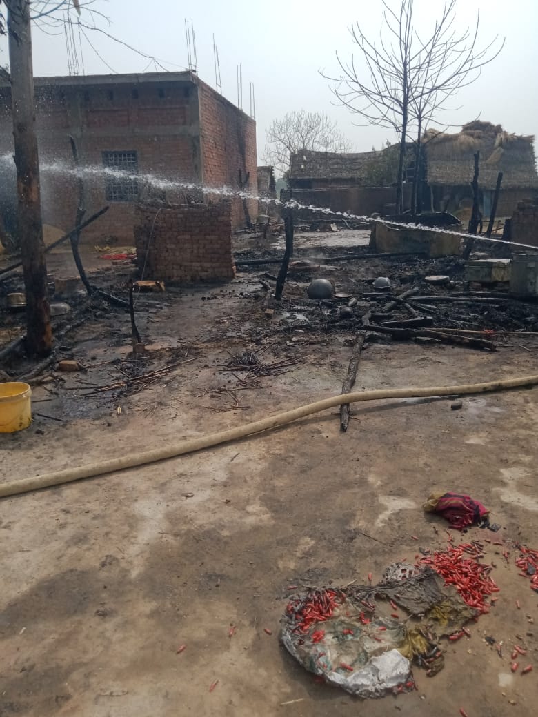 बिलग्राम हरदोई ।। तहसील क्षेत्र के कटरी परसोला गांव के मजरा शेखनपुरवा, महानंदी पुरवा, में अचानक आग लग जाने से दोनों मजरों के नौ आशियाने जलकर राख हो गये मौके पर पहुंची दमकल की गाड़ी ने आग पर काबू पाया।