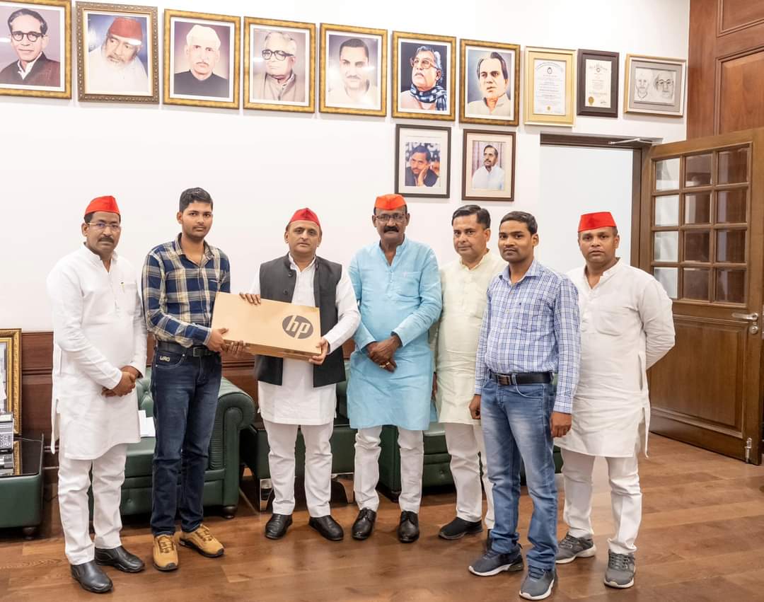 बिलग्राम हरदोई ।। समाजवादी पार्टी के राष्ट्रीय अध्यक्ष एवं पूर्व मुख्यमंत्री श्अखिलेश यादव ने हरदोई जनपद के मल्लावां क्षेत्र के हाईस्कूल, व इण्टरमीडिएट यूपी बोर्ड परीक्षा के मेधावी छात्र निखिल कुमार एवं सुश्री रिया पटेल को लैपटॉप देकर सम्मानित किया और उनके उज्जवल भविष्य की कामना की।