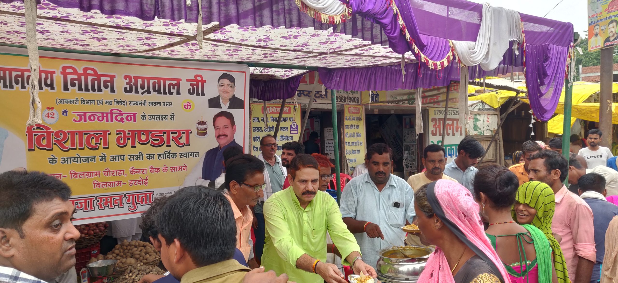 बिलग्राम, समर्थकों ने आबकारी मंत्री का जन्म दिन मनाया, किया भंडारे का आयोजन