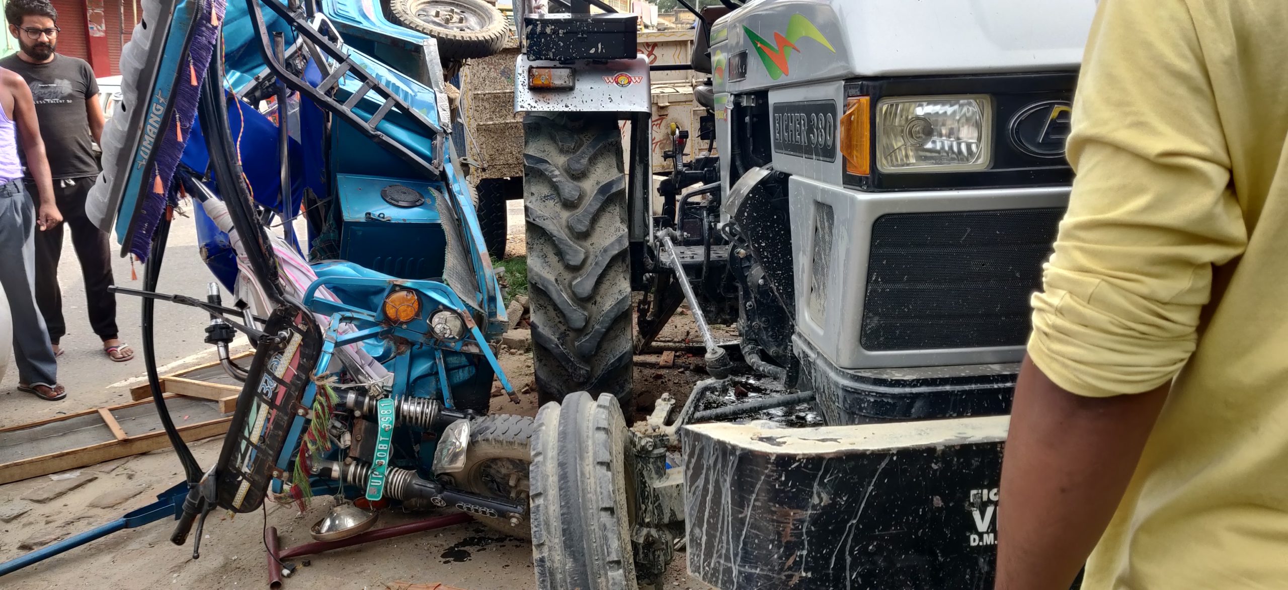 सान्डी हरदोई ।। सांडी से तेज गति में हरदोई की ओर जा रहा ट्रेक्टर अनियंत्रित हो कर ई रिक्शा को रौंदता हुआ दुकान में जा घुसा जिसमें वहां मौजूद लोग बाल बाल बच गये। प्राप्त जानकारी के अनुसार नगर के हरदोई रोड पर राजू कश्यप की पाइप व पानी की टंकी की दुकान है उसी दुकान से समान खरिदने परौंची निवासी अमित ई – रिक्शा लेकर आया था जैसे ही वो रोड के किनारे ई रिक्शा खड़ा कर सामान खरीदने के लिए दुकान पर पहुचा इसी बीच सान्डी कस्बे से गिट्टी लदी ट्रेक्टर ट्राली तेज रफ्तार से आ रही थी ट्रेक्टर के सामने एक कार अचानक आ गयी जिसे बचाने के प्रयास में ड्राइवर ने ट्रेक्टर को अपने बाईं ओर मोड़ दिया ट्रेक्टर की रफ्तार तेज होने के कारण वो अनियंत्रित होकर दुकान के बाहर खड़े ई रिक्शे से जा टकराया पडोस में नगर पालिका परिषद सान्डी की स्ट्रीट लाइट का पोल खड़ा था जिसमें जाकर ट्रेक्टर फंस गया गनीमत ये रही कि उस वक्त ई रिक्शा पर कोई सवार न था वर्ना जिससे कोई जनहानि नहीं हुई दुकान के बाहर रखी पानी टंकी .सीट . व पाइप भी टूट गये जिससे दुकानदार का काफी नुकशान हुआ मौके पर पुलिस ने पहुंच कर वाहन को कब्जे में लिया और आगे की कार्रवाई की जाने लगी।