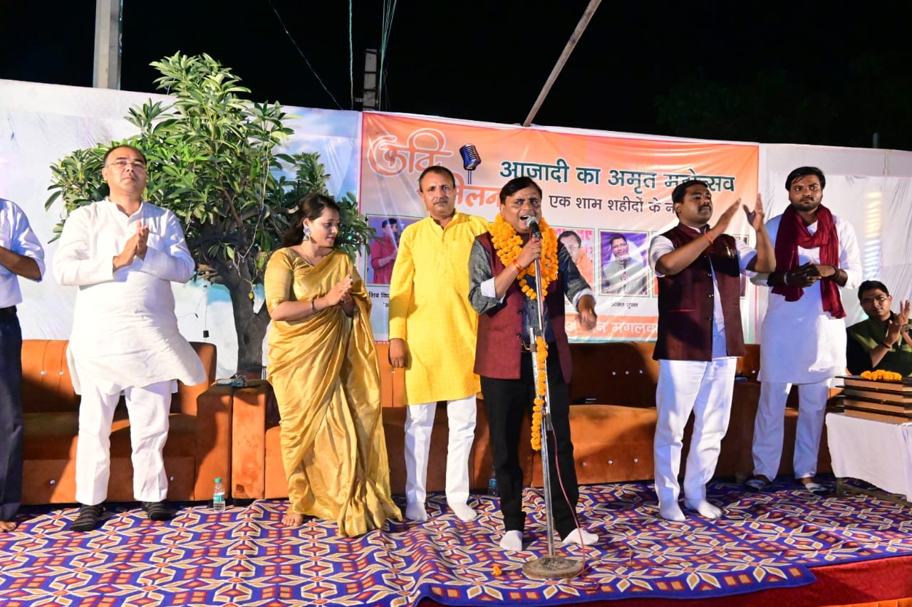 हाथों में तिरंगा और स्वाभिमान लिख देना।वतन के वास्ते अगर कोई बात आये तो ,मेरी राख़ से भी तुम हिंदुस्तान लिख देना।” रचना पढ़ वाहवाही लूटी। काकोरी से आये वीररस के कवि अशोक अग्निपथी की “पूजा ना हुई जो वीर बांकुरों की देश में तो, नौजवानी का लहू भी पानी बन जाएगा ।” रचना काफी सराही गई। कवयित्री शशि श्रेया ने ” नफरतों ने तो यहां सरहदें उठाई हैं,प्रेम ही आदमी को आदमी बनाता है ll” गीत पढ़ समां बाँधा।