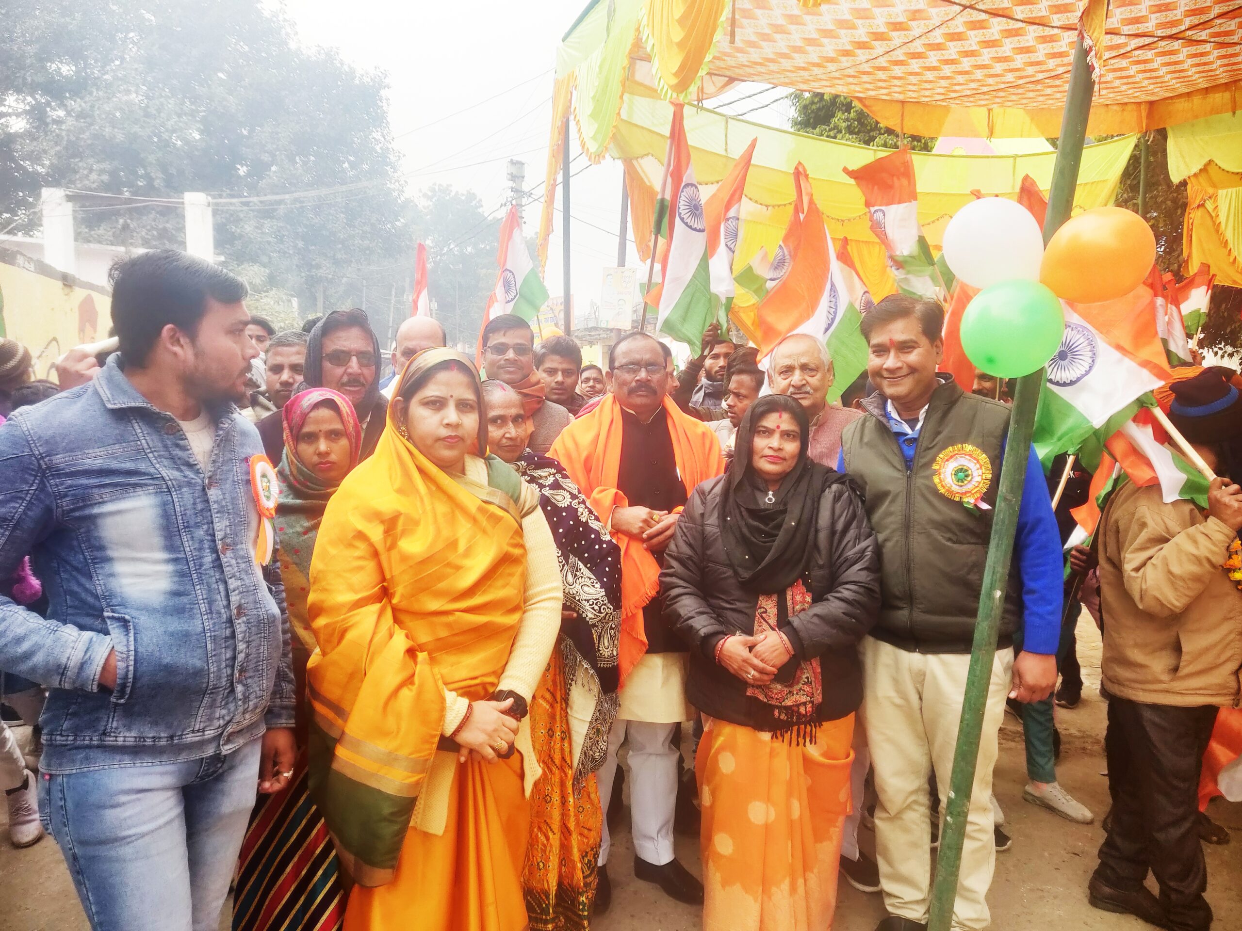 बिलग्राम हरदोई । नगर सहित पूरे क्षेत्र में 75 वां गणतंत्र दिवस बड़ी जोशो-खरोश के साथ मनाया गया भीषण सर्दी के बावजूद बच्चों बूढ़ों और नवजवानों ने देश प्रेम की भावना से ओतप्रोत होकर सर्दी को दरकिनार करते हुए अपने अपने तरीके से ये जश्न मनाया बिलग्राम की आदर्श नगर पालिका में भी अध्यक्ष अनिल राठौर ने तय समय पर ध्वजारोहण किया और वहां मौजूद लोगों को संबोधित करते हुए कहा कि देश की आजादी को याद कर हम सब सहम जाते हैं पता नहीं किस हाल में आजादी के दीवानों ने अपनी जान की परवाह किये बिना देश को आजाद कराया और हम सब को खुली हवा में सांस लेने को मौका दिया हम सबकी भी जिम्मेदारी यही है कि जो जिस समाज का प्रतिनिधित्व कर रहा है वो ईमानदारी के साथ बिना भेदभाव किये अपनी जिम्मेदारियों का निर्वहन करे ताकि देश और समाज को और बेहतर बनाया जा सके मै भी बिलग्राम की 40 हजार जनता का प्रतिनिधित्व कर रहा हूं मुझे खुशी होती है जब मै किसी के काम आता हूँ मै चौबीस घंटे जनता की सेवा के लिए तत्पर हूं। मै राजनीति को चुनाव तक ही सीमित रखता हूं जीतने के बाद सारी की सारी जनता हमारी है। सब के काम करने के लिए मै प्रतिबद्ध हूं। इस दौरान वहां पर आये कवियों और शायरों ने देश प्रेम से भरी कविताओं को पढ कर खूब वाहवाही लूटी और पालिका अध्यक्ष के हाथों से सम्मानित भी हुए। अंत में नगर की जनता के साथ हाथों में तिरंगा थाम कर पालिका अध्यक्ष अनिल राठौर ने नगर भ्रमण भी किया। इस दौरान मुख्य रूप से मंगतराम समाजसेवी नीरज गुप्ता, व सभासदगण सहित पालिका का पूरा स्टाफ मौजूद रहा।
