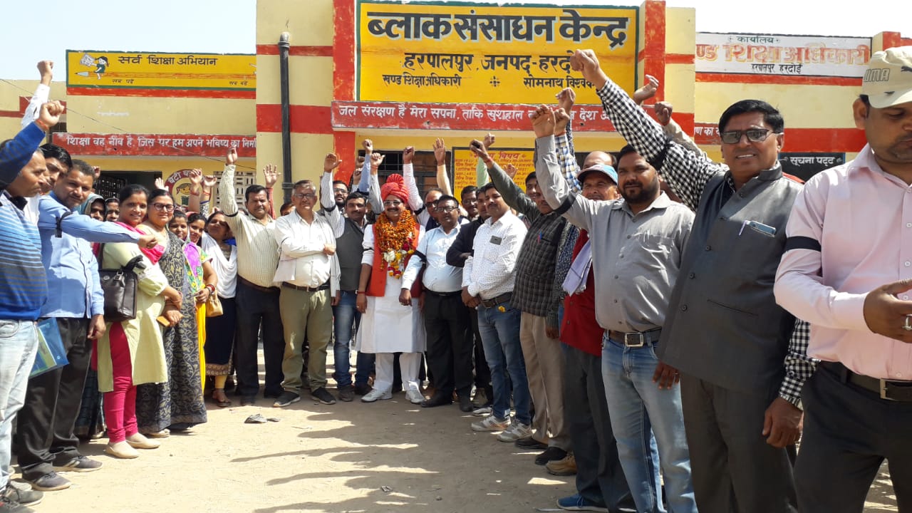हरपालपुर,हरदोई।स्थानीय कस्बे में स्थित ब्लॉक संसाधन केंद्र पर उत्तर प्रदेशीय जूनियर हाई स्कूल शिक्षक संघ के प्रदेश अध्यक्ष के नेतृत्व में शिक्षकों ने सरकार द्वारा गोपनीय आख्या लागू किए जाने को लेकर काली पट्टी बांधकर प्रदर्शन किया।ब्लॉक संसाधन केंद्र पर प्रदेश अध्यक्ष योगेश त्यागी ने प्रदर्शन के दौरान कहा कि सरकार द्वारा शिक्षकों की गोपनीय आख्या से होने वाले शोषण के विरुद्ध काली पट्टी बांधकर लगातार प्रदर्शन जारी रहेगा। जब तक सरकार काला कानून वापस नहीं लेती है। शिक्षकों का संघर्ष जारी रहेगा।शिक्षामित्रों का मानदेय बढ़ाने व उन्हें अध्यापक के पद पर तैनात किये जाने,अनुदेशकों का मानदेय बढाने, हर सरकारी अधिकारी की तरह शिक्षकों को भी चिकित्सा सेवा निःशुल्क दिलाने ,प्रदेश में सभी विभागों में प्रोन्नति लगातार हो रही है परंतु बेसिक शिक्षकों की प्रोन्नति वर्ष 2015 से अकारण बाधित है अभिलंब प्रोन्नति की जाए।सामूहिक बीमा की सीमा बढ़ाकर ₹10 लाख की जाए। प्रदेश के बेसिक शिक्षकों को शत प्रतिशत प्रोन्नति वेतनमान का लाभ दिया जाए समेत मुख्यमंत्री को संबोधित 21 सूत्रीय ज्ञापन बीएसए को भेजा गया। इस मौके पर ब्लॉक संरक्षक अवधेश कुमार मिश्र, जिला लेखाकार अवधेश मिश्रा, अखिलेश मिश्रा,राम मनोहर मिश्रा, रजनीश शुक्ला, अखिलेश, श्यामवीर सिंह रामचंद्र वीरपाल आदि मौजूद रहे।