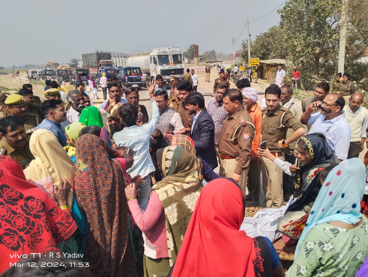 मिली जानकारी के अनुसार स्थानीय कोतवाली के गांव लालपुर माजरा सदरपुर निवासी छुन्ना उम्र 32 वर्ष पुत्र जगन्नाथ बीती रविवार को सदरपुर गांव से अपने गांव जा रहा था गंगा एक्सप्रेसवे में मिट्टी ढो रहे डंपर ने उसे टक्कर मार दी जिससे वह बुरी तरह घायल हो गया घायल अवस्था में ग्रामीणों ने उसे नगर के सामुदायिक स्वास्थ्य केंद्र में दाखिल कराया जहां पर हालत को गंभीर देखते हुए डॉक्टर ने उनसे लखनऊ स्थित ट्रामा सेंटर रेफर कर दिया जहां इलाज के दौरान उसकी मौत हो गई शव को पोस्टमार्टम के बाद ग्रामीण उसे अपने घर ले आए कोई कार्रवाई न होते देख उत्तेजित ग्रामीणों ने कटरा बिल्हौर राष्ट्रीय राजमार्ग पर शव को रखकर जाम लगा दिया जाम का समाचार मिलते ही पुलिस क्षेत्राअधिकारी सुनील कुमार शर्मा बिलग्राम कोतवाल नारायण कुशवाहा मल्लावां कोतवाल न्रपेन्दृ कुमार सिंह सांडी थाना प्रभारी छोटेलाल नायाब तहसीलदार देशराज भारती सहित भारी संख्या में पुलिस बल मौके पर पहुंच गया और उत्तेजित ग्रामीणों को काफी समझा बुझाकर कड़ी मशक्कत के बाद जाम को खुलवाया मृतक की तीन छोटी-छोटी पुत्रियाँ हैं।जिनके भरण-पोषण तथा उनके रहने सहने की चिंता को लेकर परिजनों ने आर्थिक सहायता दिलाये जाने की मांग की है।