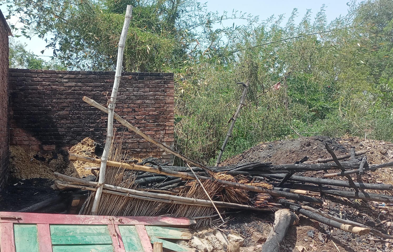कोतवाली क्षेत्र के गांव तेजीपुर के मजरा पट्टी मे सोमवार की सुबह करीब दस बजे श्रवण पुत्र रामकृष्ण के घर के बाहर रखे बँगले मे अज्ञात कारणों से आग लग गई। बंगले मे आग जलते देख लोगो ने शोरशराबा मचाया। ज़ब तक ग्रामीणों ने आग बुझाई तब तब तक बंगले मे भरा भूसा जल गया। साथ ही बंगले मे बंधी एक पड़िया व बछिया झुलस गई। पीड़ित ने घटना की सूचना पुलिस व राजस्व विभाग को दी है।
