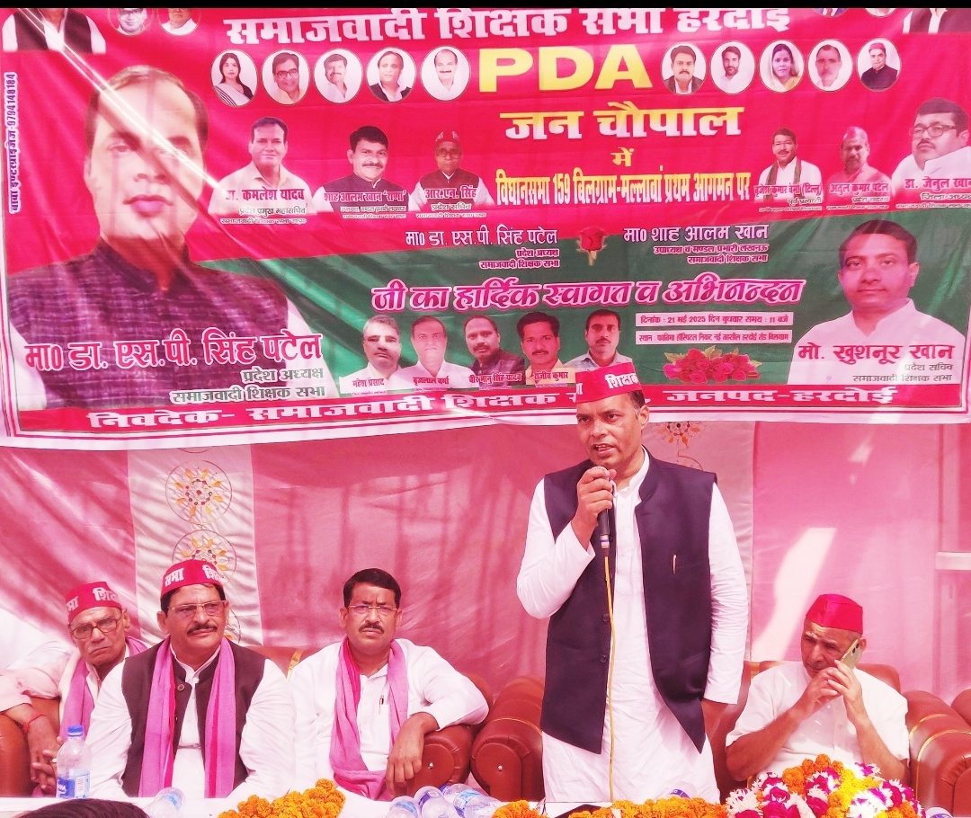 बिलग्राम हरदोई। ।बिलग्राम में बुधवार को समाजवादी पार्टी (सपा) ने पीडीए (पिछड़ा, दलित, अल्पसंख्यक) जन चौपाल का आयोजन किया। इस कार्यक्रम का उद्देश्य सपा की नीतियों को जन-जन तक पहुंचाना और आगामी शिक्षक व स्नातक एमएलसी चुनावों के लिए रणनीति तैयार करना था। हरदोई रोड पर फातिमा हॉस्पिटल के प्रांगण में शिक्षक सभा के प्रदेश सचिव खुश्नूर खां के संयोजन में आयोजित इस जन चौपाल में सपा शिक्षक सभा के प्रदेश अध्यक्ष डॉ. एसपी सिंह पटेल, बतौर मुख्य अतिथि के रूप में शामिल हुए उपाध्यक्ष व मंडल प्रभारी लखनऊ शाह आलम खान राणा, और आर.एन. सिंह ने भी प्रतिभाग किया