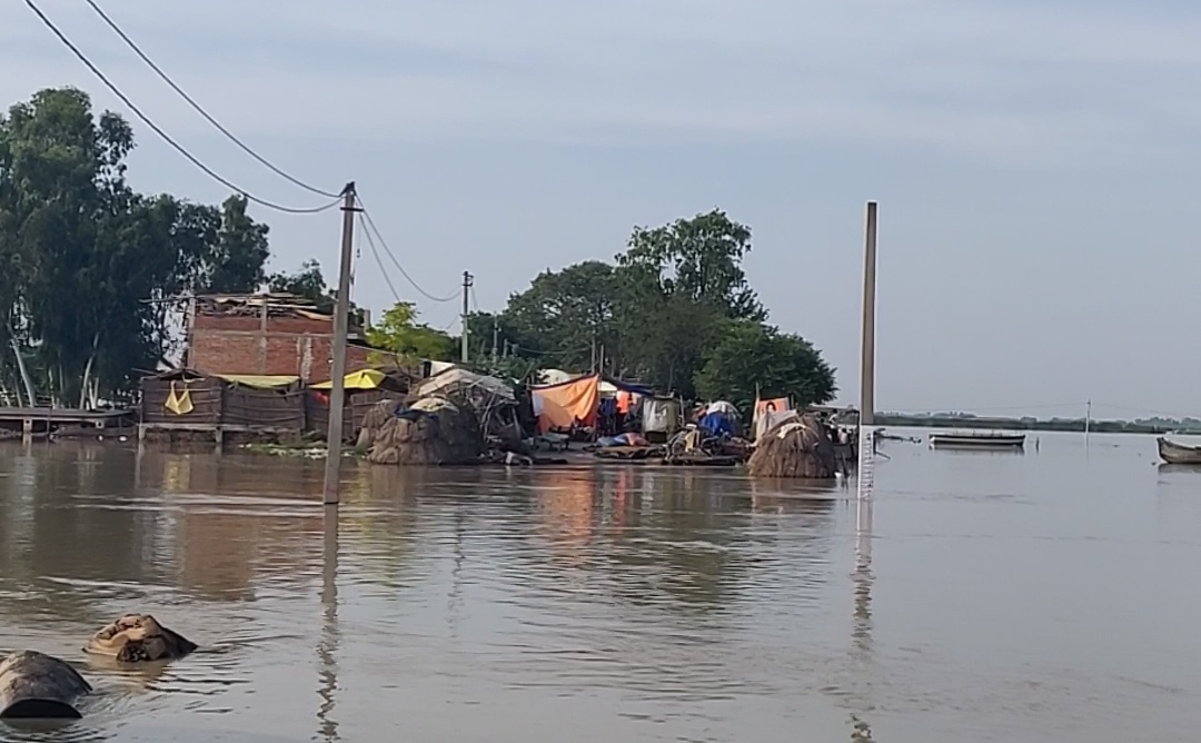 बिलग्राम हरदोई । बिलग्राम गंगा किनारे बाढ़ के हालात इस कदर हैं कि लोगों की किसानी चौपट हो गई है। खेत खलिहान गंगा के पानी में डूब गए और घरों में पानी है। ऐसे में प्रशासन की ओर से राहत पहुंचाई गई है। पिछले एक महीने से गंगा का जलस्तर बढ़ने से मक्कू पुरवा ,कटरी महादेवा और मेहंदी घाट तक 53 से अधिक गांव के लोग बाढ़ के पानी से बर्बाद होते जा रहे हैं । सबसे ज्यादा असर खेती और किशानी पर पड़ा है । गुलाबपुरवा के निवासी रामकुमार, लालाराम का कहना है कि आसपास पानी ने घेर रखा है । पानी रुका है फसल बची नही है। घर भी रहने लायक नही है। बांध बनाया गया वह भी काम नही आया। बढ़ते जलस्तर को रोकना मुश्किल है। पहाड़ो पर बरसात की वजह से जल स्तर और बढ़ने की आशंका जताई गई है। लोगों का कहना है की धनिया, हरी मिर्च, अरबी ,तरोई और सब्जी के साथ-साथ मक्का की खेती पूरी तरीके से चौपट हो गई है । जल स्तर बढ़ने के चलते कटरी परसोला के रहने वाले लोगों ने अपने जानवरों को सुरक्षित स्थान पर ले जाना शुरू कर दिया है। कई जगहों पर नाव से सामान भरकर लोग अपना सामान सहेज रहे हैं । पूरे इलाके में पशुओं के चारे की भी समस्या पैदा हो गई है।