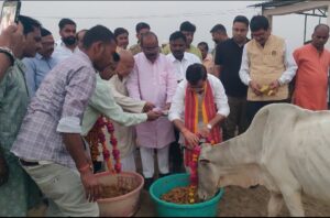 बिलग्राम, हरदोई। गोवर्धन पूजा के पावन अवसर पर बिलग्राम नगर में विभिन्न स्थानों पर उत्साह के साथ पूजा-अर्चना की गई। विशेष रूप से नगरपालिका परिषद की कान्हा गौशाला में आयोजित कार्यक्रम में क्षेत्रीय विधायक आशिष सिंह आशू ने शिरकत की और विधिवत पूजा कर गौमाता का आशीर्वाद लिया। इस अवसर पर विधायक ने गौशाला की पवित्र गायों को गुड़-चना खिलाकर उनकी सेवा की, जो गोवर्धन पूजा की परंपरा को जीवंत बनाता नजर आया।