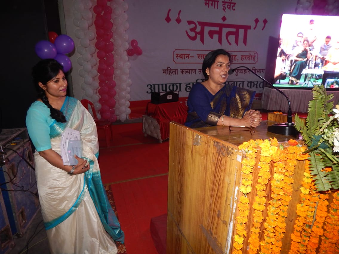 हरदोई।महिलाओं की सुरक्षा,सम्मान एवं स्वावलम्बन के लिए संचालित विशेष अभियान मिशन शक्ति के अन्तर्गत रसखान प्रेक्षागृह में जिला प्रशासन द्वारा आयोजित मेगा इवेंट ‘अनंता‘ कार्यक्रम का शुभारम्भ मुख्य अतिथि के रूप में विधायक शाहाबाद रजनी तिवारी, भाजपा महिला मोर्चा की अध्यक्ष अलका गुप्ता, जिलाधिकारी अविनाश कुमार तथा मुख्य विकास अधिकारी आकांक्षा राना ने संयुक्त रूप से दीप प्रज्ज्वलि कर किया।इस अवसर पर उपस्थित महिलाओं को सम्बोधित करते हुए विधायक ने कहा कि महिलायें अपने को अबला न समझे और समाज की मुख्यधारा से जुड़कर सरकार द्वारा चलाई जा रही योजनाओं के माध्यम से रोजगार आदि स्थापित करें और अपनी आर्थिक स्थिति को मजबूत बनायें। कहा कि इस अभियान के प्रथम चरण में कुल 6,42,101 व्यक्तियों को जिनमें 2,89,961 पुरूष एवं 3,51,624 महिलाओं को विभिन्न विभागों के कार्यक्रम के माध्यम से जागरूक किया गया तथा प्रशासन की पाठशाला के माध्यम से महिलाओं व बालिकाओं को उनके अधिकार, विशेष सुरक्षा नम्बरों, गुड टच एवं बैड टच के बार में विस्तार से जानकारी देकर सशक्त बनाया गया, इसके साथ ही समस्त तहसीलों व थानों पर महिला हेल्प डेस्क स्थापित किये गये तथा तहसीलों में स्थापित महिला हेल्प डेस्क पर कुल 76 प्रकरण प्राप्त हुए जिनका गुणवत्ता परक निस्तारण किया गया और पुलिस थानों पर महिला हेल्प डेस्क पर 12108 प्रकरण प्राप्त हुए जिनका निस्तारण किया गया तथा जनपद में स्थापित वन स्टाप सेंटर में 60 केस प्राप्त हुए जिनमें से 50 का निस्तारण हुआ व 10 केस प्रक्रियाधीन है।जिलाधिकारी ने कहा कि राष्ट्रीय ग्रामीण आजीविका मिशन के अर्न्तगत जनपद में 8503 स्वयं सहायता समूह गठित कर 96434 परिवारों को जोड़ा गया तथा समूह की महिलाओं द्वारा कोरोना काल में रिकार्ड मास्क निर्माण के साथ सूखा राशन वितरण, बेसिक शिक्षा विभाग के स्कूली बच्चों के लिए ड्रेस निर्माण, विद्युत देय वसूली आदि कार्य सफलता पूर्वक किये जा रहे है और प्रत्येक ग्राम पंचायतों में सामूदायिक शौचालय का रख रखाव भी चयनित महिलाओं द्वारा किया जा रहा है तथा राजस्व विभाग द्वारा राजस्व संहिता के अर्न्तगत वरासत अभियान के तहत 23421 आवेदन प्राप्त हुए जिसके सापेक्ष 14954 महिलाओं के नाम वरासत खतौनी में दर्ज कराये गये तथा श्रम विभाग द्वारा मिशन शक्ति के अन्तर्गत 1107 श्रमिक महिलाओं को पंजीकृत कर शिशु हितलाभ योजना में 07 महिलाओं को रू0-1,79,000 का लाभ प्रदान करने के साथ संत रविदास शिक्षा सहायता योजना में 17 बालिकाओं का साइकिल प्रदान की गयी और मिशन शक्ति के द्वितीय चरण में कुल 15,930 व्यक्तियों को विभिन्न विभागों के कार्यक्रम के माध्यम से जागरूक किया जा चुका है और इस प्रकार जनपद में महिला सशक्तिकरण के क्षेत्र में उल्लेखनीय कार्