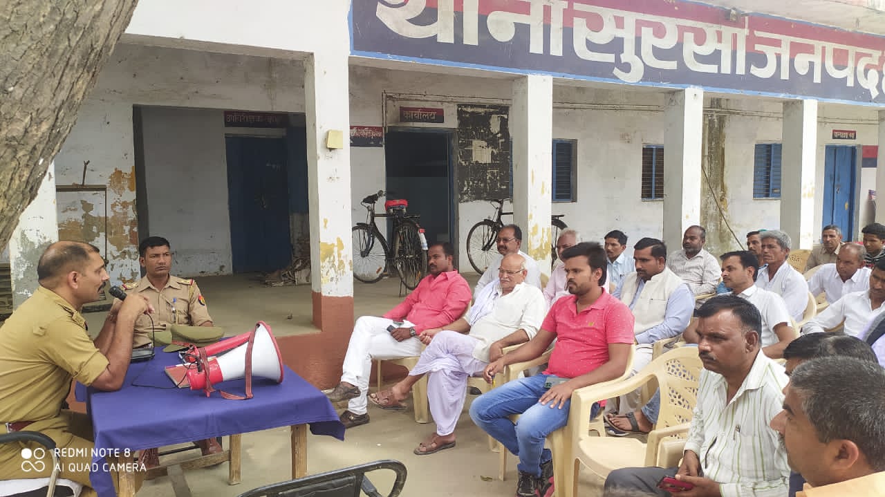 सुरसा।होली त्यौहार के मद्देनजर शुक्रवार को सुरसा थाना परिसर में पीस कमेटी की बैठक हुई आहूति की गई जिसमें संबोधित करते हुए थानाध्यक्ष वीरेन्द्र सिंह तोमर ने कहा कि होली आपसी भाईचारा का त्यौहार है।