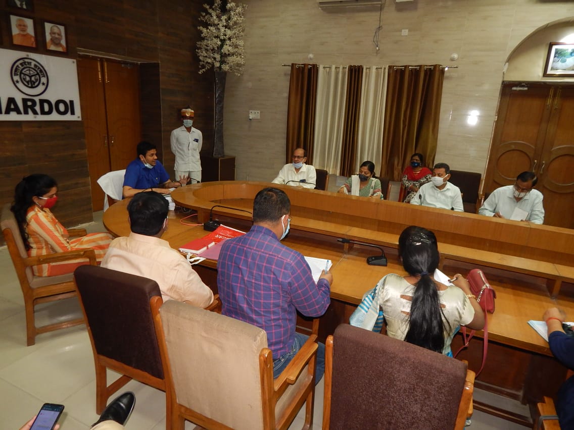 हरदोई ।। जनपद में बढ़ते कोरोन संक्रमितों के दृष्टिगत कलेक्ट्रेट सभागार में आहूत बैठक की अध्यक्षता करते हुए जिलाधिकारी अविनाश कुमार ने मुख्य चिकित्साधिकारी डा0 सूर्यमणि त्रिपाठी से कहा कि विगत माहों में कोविड-19 के लिए लगी टीमों द्वारा ही अपने दायित्वों का निर्वहन किया जायेगा। उन्होने कहा कि आशा एवं आंगनबाड़ी आदि की बनी टीम द्वारा घर-घर जाकर लोगों की कोरोना जांच करने के साथ सार्वजनिक स्थान, बाजार एवं भीड़-भाड़ वाले स्थानों पर जाने मास्क लगाने और दो गज की दूरी बनाये रखने के सम्बन्ध में जागरूक किया जायेगा।
