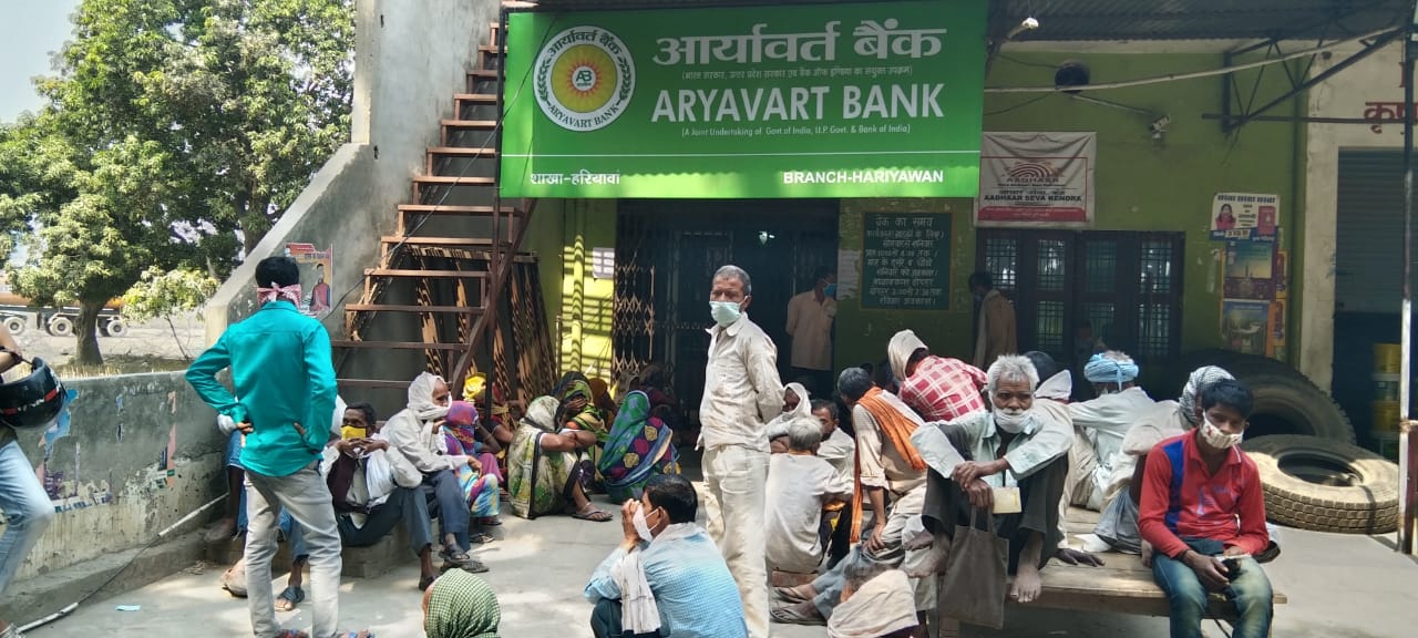 आर्यावर्त ग्रामीण बैंक हरियॉवा में कोरोना के नियमों की उड़ाई जा रही है धज्जियां