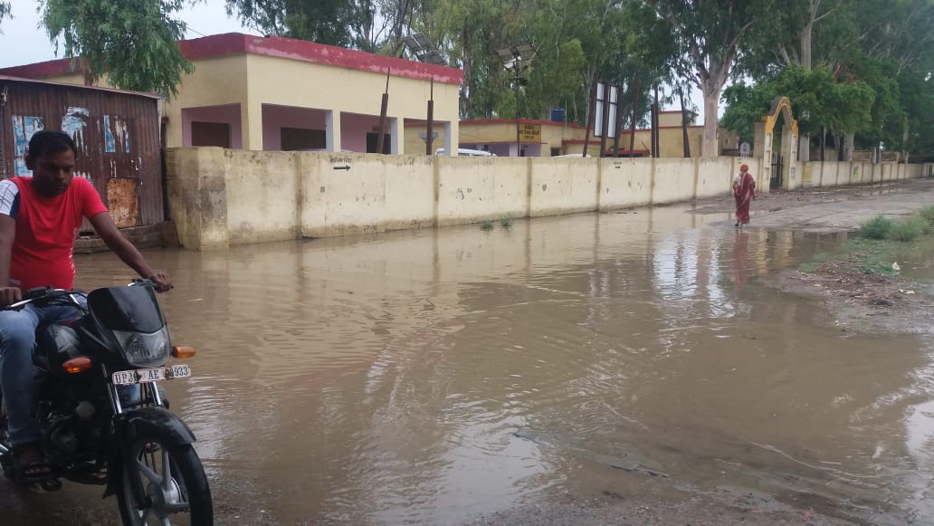 हरियावां,हरदोई।उमस भरी गर्मी में परेशान क्षेत्रवासियों के लिए तो बारिश राहत बनकर आई लेकिन व्यवस्था के नकारेपन की वजह से ये आफत बन गई। गुरुवार सुबह हुई बारिश के चलते हरियावां ब्लॉक मुख्यालय परिसर को जाने वाली सड़क पर जबर्दस्त जल भराव हो गया, यहां तक कि ब्लॉक परिसर के बाहर एक फीट तक पानी भर गया। सड़क पर जलजमाव का आलम यह रहा कि नालियों का पानी बरसात के साथ मिलकर सड़क पर बहने लगा, हरियावां कस्बे के प्रसिद्ध बाराही देवी मंदिर को जाने वाली सड़क पर जलभराव से वट वृक्ष व अमावस्या की पूजा करने के लिए जा रही महिलाओंं को खासी परेशानियों के सामना करना पड़ा।