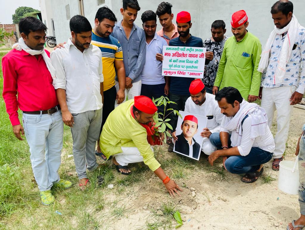 सपा नेता मुकुल सिंह की अगुवाई में सपाइयों ने किया पौधारोपण