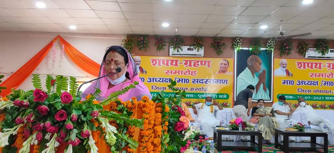 हरदोई। भारतीय जनता पार्टी के नवनिर्वाचित जिला पंचायत अध्यक्ष श्रीमती प्रेमावती को जिला अधिकारी अविनाश कुमार ने गांधी भवन हाल में निर्वाचित सदस्यों, ब्लाक प्रमुख, विधायकों और सांसदों की उपस्थिति में शपथ दिलाई।इस अवसर पीआर राज्य सभा सांसद डॉक्टर अशोक बाजपाई मौजूद रहे। इसके साथ ही जिला पंचायत सदस्यों को भी शपथ दिलाई गई ।