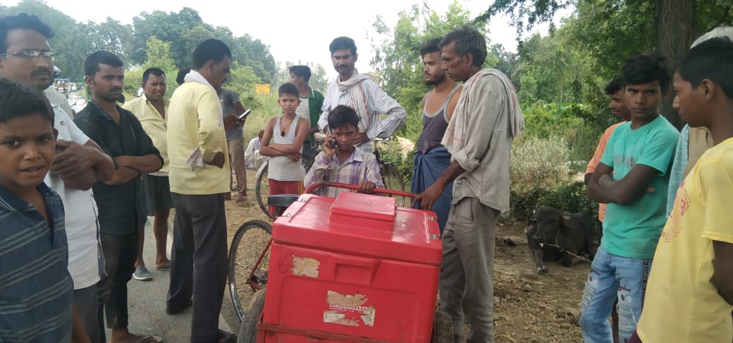 ये सड़क पर आइसक्रीम बेच रहा था तभी बावन की तरफ से आ रही मोटरसाइकिल सवार से बर्फ के ठेले में जोरदार टक्कर लग गई, जिससे बाइक सबार धन्युली निवासी राजकुमार अवस्थी उम्र 45 वर्ष के पैर में गिरने से चोट आ गई, लेकिन आईसक्रीम बेच रहा नाबालिग बच्चा बाल बाल बचा, उस बच्चे के बताया ठेले में ब्रेक न होने से बाईक में टक्कर लग गई, बर्फ फैक्ट्री मालिक के द्वारा नाबालिग बच्चों से आइसक्रीम बिकबाने का काम किया जा रहा है , हालांकि इस संबंध में उच्च अधिकारियों से बात की गई उन्होंने कार्रवाई करने का आश्वासन दिया है