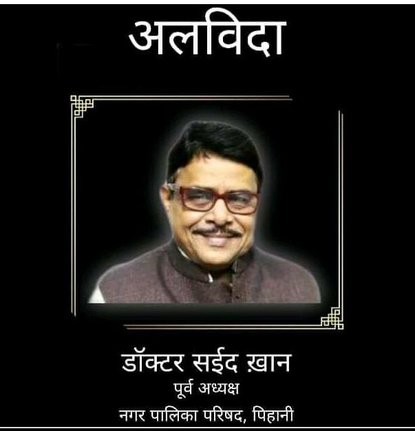 नपाप पिहानी के पूर्व चेयरमैन रहे डाॅ सईद खाँ सोमवार सुबह अंतिम साँसे लेकर दुनिया को अलविदा कहकर दारे फानी में चले गए।उनका इस तरह अचानक दुनिया से कूच कर जाना घर-परिवार, रिश्तेदार और तमाम नगरवासियों के लिए बहुत ही दुःखदायी साबित हुआ।
