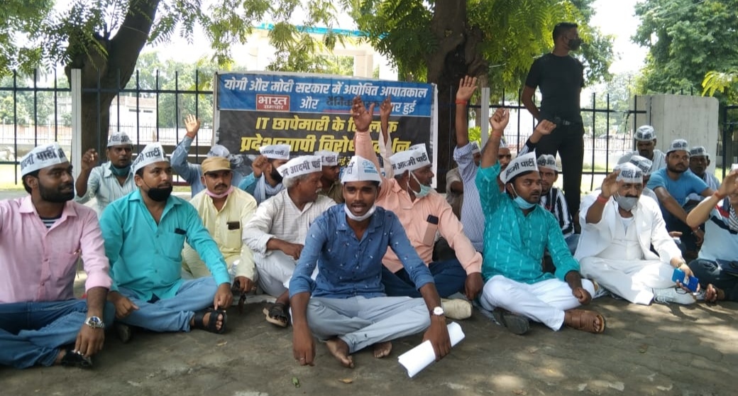 जिलाध्यक्ष ने कहा कि प्रदेश प्रभारी राज्यसभा सांसद संजय सिंह ने प्रदर्शन का आह्वान किया था। आम आदमी पार्टी इस कार्रवाई को सरकारी गुंडागर्दी करार देते हुए इसके खिलाफ आंदोलन छेड़ चुकी है। इस प्रकरण में एक ट्वीट करके संजय सिंह ने कहा था कि भाजपा का अंत तय है “विनाश काले विपरीत बुद्धि।’ भारत समाचार के प्रमुख व वरिष्ठ पत्रकार वीरेंद्र सिंह के घर और ऑफिस पर इनकम टैक्स का छापा मारा गया है। यह लोकतंत्र के चौथे स्तंभ पर करारा प्रहार है। यूपी की जनता आदित्यनाथ और बीजेपी दोनों को सबक सिखाएगी।