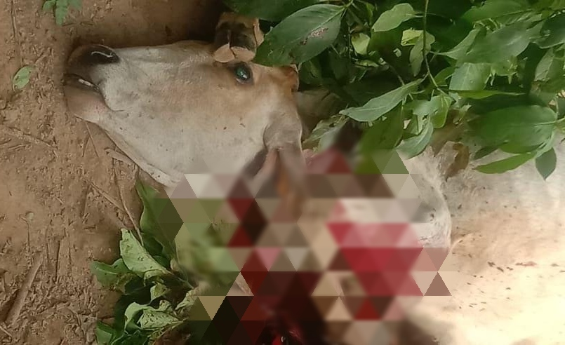 मल्लावां हरदोई ।। कोतवाली क्षेत्र के एक गांव के मानसिक विक्षिप्त युवक ने गाय को काटकर मार डाला । क्षेत्र के ग्राम तेजीपुर पट्टी के अजय पुत्र पुतई उम्र 24 वर्ष ने गांव के किनारे आम के बाग में खुरपे से वार कर  गौवंश का गला काट दिया । जिसके बाद गोवंश की जगह पर ही मौत हो गई । घटना स्थल पर पहुंची पुलिस ने जांच पड़ताल की । जांच पड़ताल में पुलिस व प्रधान पति ने बताया कि उक्त युवक मानसिक विक्षिप्त है । कोतवाल ज्ञानेंद्र सिंह ने बताया कि अभियुक्त के खिलाफ गौवध अधिनियम के तहत मुकदमा दर्ज कर लिया गया है आवश्यक विधिक कार्यवाही की जा रही है ।