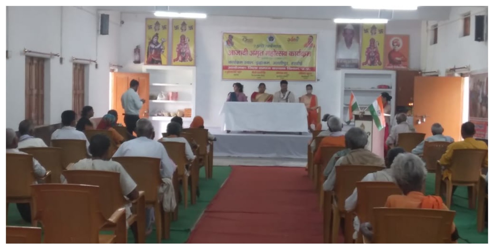 जिला समाज कल्याण अधिकारी श्रीमती राजमती सिंह द्वारा दीप प्रज्वलन के बाद वृद्धाश्रम में रहने वाले उजागर बाबा, कल्लूबाबा,जसवंत बाबा, रामसरुप बाबा आदि ने भजन कीर्तन के माध्यम से अपनी भावपूर्ण प्रस्तुति दी। उजागर बाबा के गीत “अब हम जानी समझी काया है बुढ़ानी” ने बुढ़ापे की जीवन के सच्चाई को बयान से सभी को भाव विभोर कर दिया।कल्लू बाबा ने देश भक्ति तथा लोक संस्कृति पर आधारित नृत्यगीत के माध्यम से अपनी प्रस्तुति की। इस अवसर पर मुख्य अतिथि जिला समाज कल्याण अधिकारी श्रीमती राजमती सिंह ने कहा कि आश्रम में आकर मुझको अपने घर जैसा आत्मीय वातावरण का सूकून मिलता है।आश्रम में मनोयोगपूर्वक कार्यकर्ताओं की सेवा भावना देख मन को प्रसन्नाता होती है।हम सब वास्तव में स्वतंत्रता दिवस मनाते हुए उन वीर स्वतन्त्रता सेनानियों का जिन्होनें आजादी के लिए अपने प्राण तक निछावर कर दिये।सभी स्वतंत्रता संग्राम सेनानियों के शुक्रगुजार हैं जिसके कारण हम आजाद की हवा में सांस ले रहे हैं। इस अवसर पर कटोरी दादी,शकुंतला दादी,सरोज दादी आदि ने लोक संगीत गीत की मनमोहक प्रस्तुतियां दी। संस्थान परिवार की बेटियों मान्या,तपस्या और काव्या ने देश भक्ति गीतो पर सुंदर प्रस्तुतियां दी। वृद्धाश्रम प्रबन्धक पारुल गुप्ता ने कहा कि स्वतंत्रता संग्राम द्वारा आजादी के लिए किए गए महायज्ञ में भारत के जिन भी वीर सपूतों ने अपनी आहुतियां दी हैं ।जिसके फलस्वरुप हम स्वतंत्र भारत में रह रहे हैं।आज भी सीमा पर तैनात भारत के सच्चे वीर सपूत सैनिक जिनकी बदौलत हम घरों में अपने आप को सुरक्षित महसूस करते हैं। उन्हें हम सब अभिनंदन वंदन करते हैं। संस्थान निदेशक डा शीर्षेन्दु शील त्रिवेदी विपिन ने कहा कि हम सब निश्चित रूप से आज स्वतंत्र भारत के निवासी हैं लेकिन हम सबको अपने बुराइयों को दूर कर उनसे स्वतंत्रता पाने की आवश्यकता है जिस ये भारत को पुनः विश्व गुरु के रुप में स्थापित करके अपने दायित्व का निर्वहन कर सके।कार्यक्रम की अध्यक्ष डा रश्मि द्विवेदी ने सभी को आजादी अमृत महोत्सव के सफल आयोजन के लिए सभी को बधाई दी ।अधीक्षक एश्वर्य प्रताप सिंह ने अपने विचारों से सबको प्रोत्साहित किया। कार्यक्रम का संचालन आकंक्षा शुक्ला ने किया। इस अवसर पर सीता,मेघा,पूजा,नैतिक, संजीव,निर्भय आदि समस्त कार्यकर्ता,तथा 115 बुजुर्ग आदि उपस्थित रहे।
