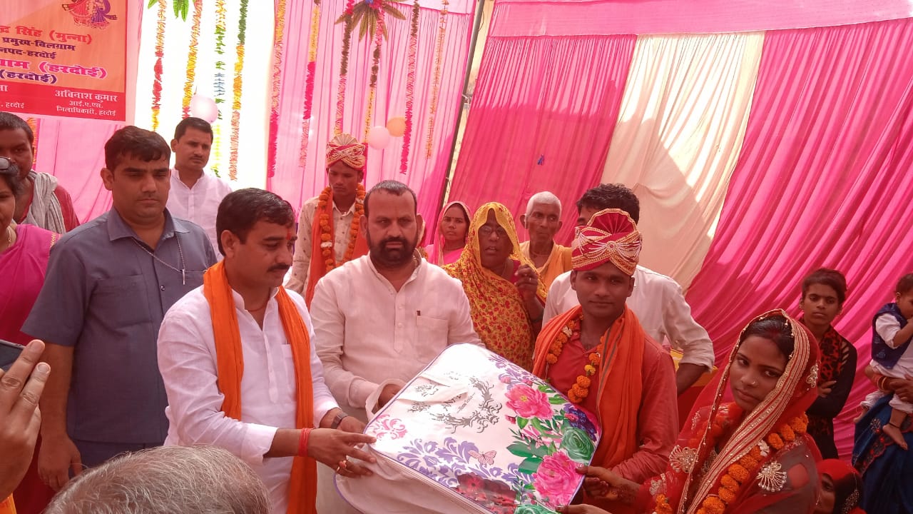 मुख्यमंत्री सामूहिक विवाह योजना के अंतर्गत 11 जोड़ों ने पूर्व में अपना विवाह कराने हेतु रजिस्ट्रेशन कराया था। जिसमे 9 जोड़ो का हिन्दू रीति रिवाज व दो जोड़ो का मुस्लिम रीति रिवाज के साथ विवाह संपन्न हुआ। जिसमे उत्तर प्रदेश सरकार के द्वारा 51 हजार रुपये विवाह संपन्न कराने हेतु दिए जाते है।जिसमे नगद धनराशि 35 हजार रुपये लड़की के खाते में भेजी जाती है व शेष उपहार स्वरूप सामान दिया जाता है रविवार को ब्लॉक परिसर में मुख्यमंत्री सामूहिक विवाह योजना के तहत 11 जोड़े विवाह कराने के लिए समारोह में उपस्थित हुए। युवकों ने अग्नि के सात फेरे लेकर अपनी पत्नियों की मांग में सिंदूर भरा। कार्यक्रम में मुख्य अतिथि के रूप में क्षेत्रीय विधायक आशीष सिंह आशू ने नव दंपतियों को उपहार सामग्री और विवाह प्रमाण पत्र भेंट किए। कार्यक्रम के आयोजक रहे खंड विकास अधिकारी ने सभी जोड़ो को आशीर्वाद प्रदान किया। कार्यक्रम में मौजूद ब्लाक प्रमुख मुन्ना सिंह समाज कल्याण अधिकारी राज मति वीडियो मान बीर सिंह पूर्व प्रधान राम राज व क्षेत्रीय लोग मौजूद रहे।।