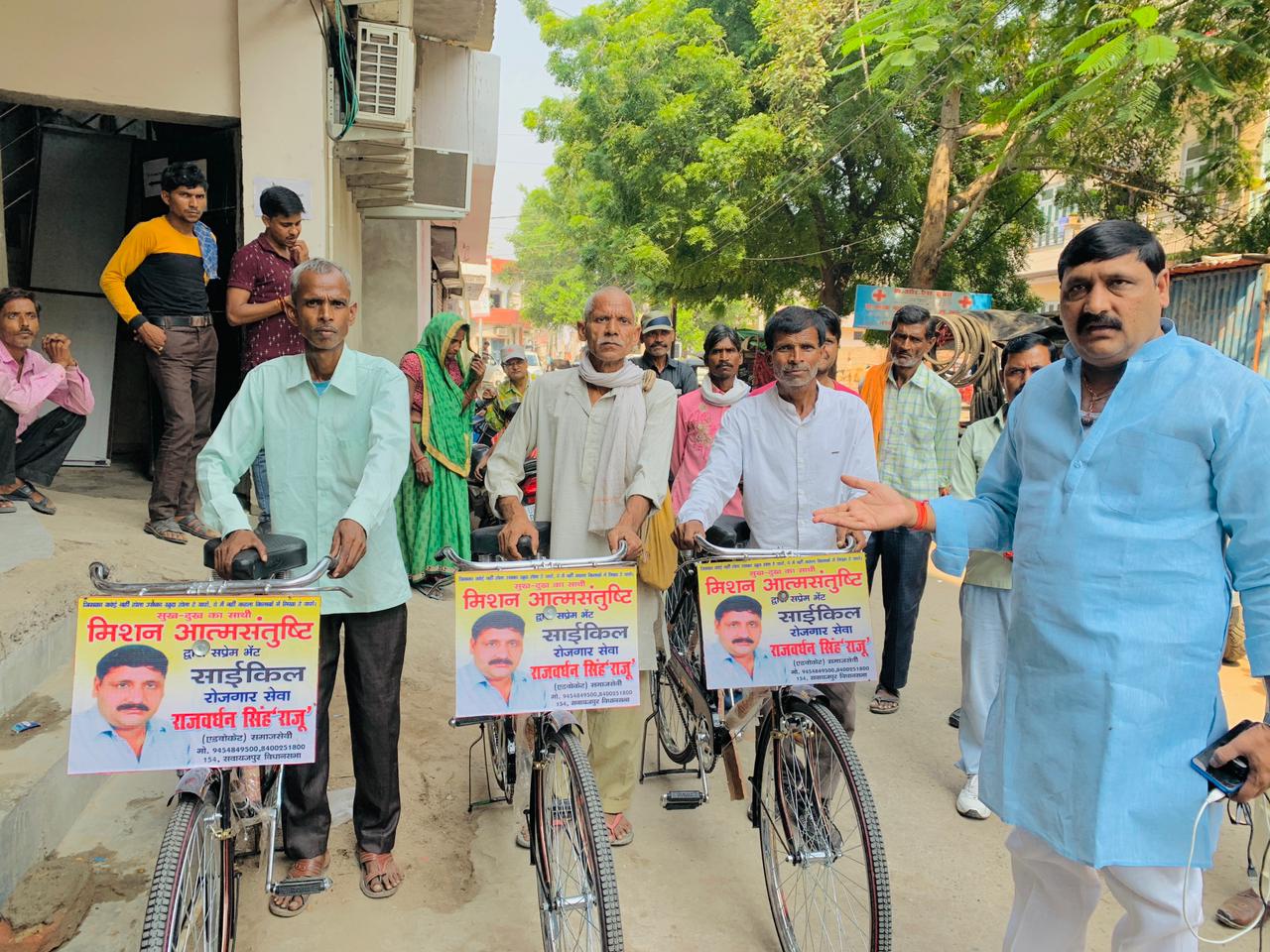 जानकारी के अनुसार, सवायजपुर विधानसभा के अंतर्गत आने वाले विकासखंड भरखनी के ग्रामसभा बिनैका अकबरपुर निवासी राजपाल पासी को साइकिल की सौगात मिली है। इसके अलावा विकासखंड हरपालपुर के ग्रामसभा टिलिया घटवासा निवासी उदय नारायण दीक्षित को भी साइकिल भेंट की गई है। दोनों की आर्थिक स्थिति काफी दयनीय है। इनके घर पर रोज़गार का कोई जरिया भी नहीं है। इसकी सूचना मिशन आत्मसन्तुष्टि के संरक्षक राजवर्धन सिंह राजू भैया को मिली। इस पर उन्होंने दोनों ग्रामीणों को कार्यालय बुलाया। इसके बाद उन्होंने दर-दर भटक रहे ग्रामीणों को जीवनयापन करने के लिए साइकिल भेंट की। इस साइकिल से अब यह ग्रामीण फेरी आदि लगाकर अपने परिवार का भरण-पोषण कर सकेंगे।