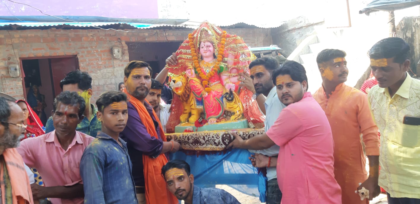 माता रानी के जयकारों एवं ढोल नगाड़ों के साथ  धूमधाम से किया गया मूर्ति विसर्जन