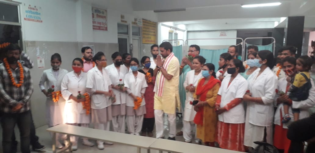 भाजपा जिलाध्यक्ष सौरभ ने 100 करोड़ वैक्सीनेशन पर कोरोना वॉरियर्स को किया सम्मानित