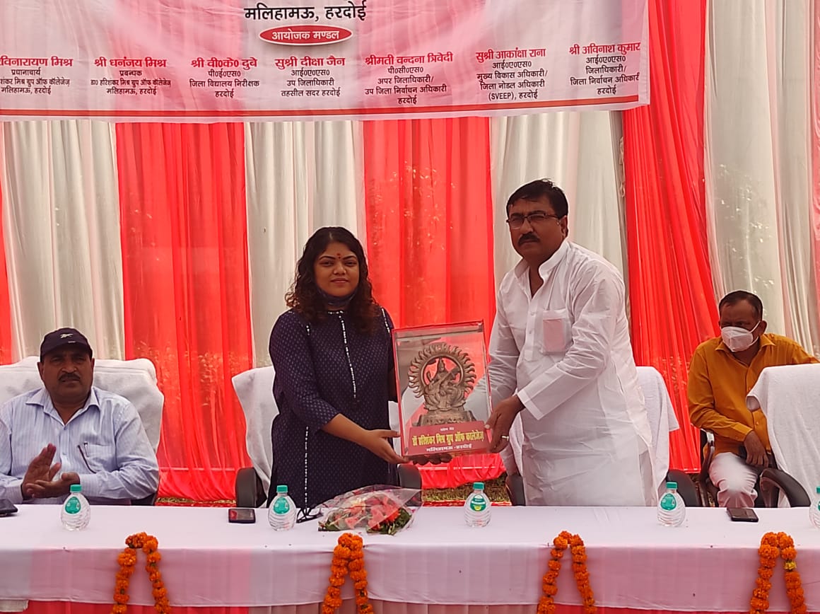 हरदोई। । मतदाता जागरूकता अभियान के अन्तर्गत आज डा० हरिशंकर मिश्र महाविद्यालय मलिहामऊ में एक समारोह का आयोजन किया गया जिसमें सुश्री दीक्षा जैन उपजिलाधिकारी सदर मुख्य अतिथि के रूप में उपस्थित रहीं । कार्यक्रम में श्री वी के दुबे जिला विद्यालय निरीक्षक , हरदोई विशिष्ट अतिथि के रूप में उपस्थित रहे । इस अवसर पर श्री रामकृष्ण परमहंस बालिका इण्टर कालेज मलिहामऊ और डा० हरिशंकर मिश्र महाविद्यालय के छात्र/छात्राओं द्वारा सरस्वती वंदना, स्वागत गान, समूह गान एवं भाषण आदि कार्यक्रम प्रस्तुत किये गए । मुख्य अतिथि सुश्री दीक्षा जैन ने सभी छात्र/छात्राओं से अधिकाधिक संख्या में नागरिकों को मतदाता सूची में सम्मिलित करने एवं सभी को मतदान हेतु प्रेरित करने का आह्वान किया । जिला विद्यालय निरीक्षक श्री वी के दुबे ने सम्बोधित करते हुए कहा कि “मतदाता जागरूकता अभियान के अन्तर्गत स्वीप कार्यक्रम की श्रृंखला में जनपद स्तरीय कार्यक्रम कल दिनांक 01-11-2021 को श्री वेणीमाधव बालिका इंटर कॉलेज हरदोई में हुआ था जिसमें सुश्री आकांक्षा राना, मुख्य विकास अधिकारी की गरिमामयी उपस्थिति में शहरी क्षेत्र के विद्यालयों के छात्र/छात्राओं के माध्यम से मतदान के महत्व के प्रति सभी को जागरूक करने का अभियान चलाया । आज ग्रामीण क्षेत्रों के विद्यालयों का जनपद स्तरीय कार्यक्रम डा०हरिशंकर मिश्र महाविद्यालय मलिहामऊ में आयोजित किया जा रहा है । लोकतंत्र में एक-एक मत का बहुत महत्व है , इसलिए सभी अर्ह नागरिकों को मतदाता सूची में सम्मिलित करने के साथ ही सभी को बिना किसी भय, पक्षपात या लोभ के मतदान अवश्य करना चाहिए । हमारे संविधान ने सभी को समान मताधिकार की व्यवस्था सुनिश्चित की है “।