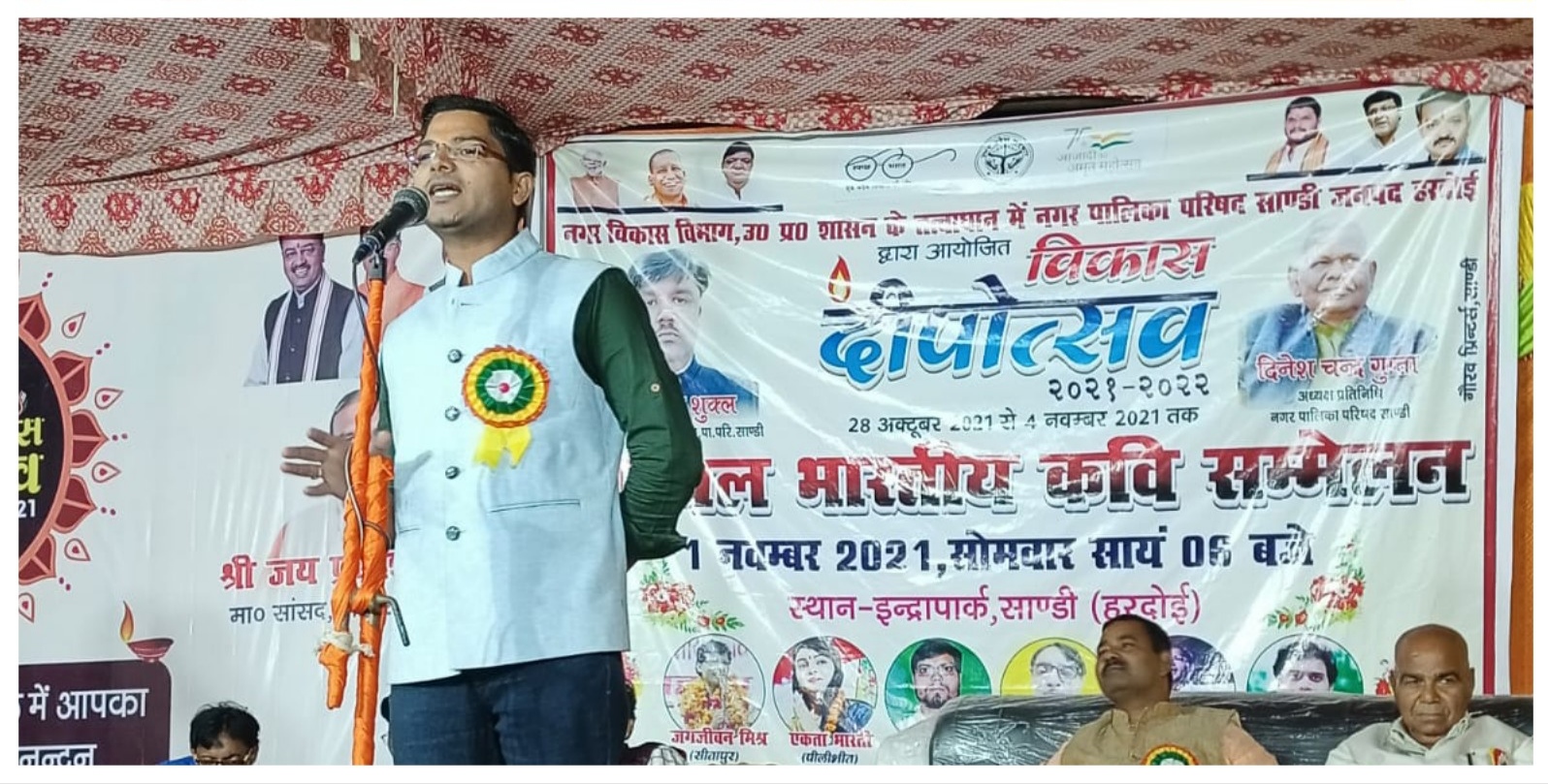कवि सम्मेलन की शुरुआत पीलीभीत से पधारी कवयित्री एकता भारती की वाणी वंदना से हुई। हरदोई से गीतकार पवन कश्यप ने “प्यार की एक झूठी शपथ हो गया, प्रेम का राजपथ देवपथ हो गया” गीत पढ़ समां बांधा। लखनऊ से आए हास्य कवि नर कंकाल ने “कोरोना बहुतै उत्पाती, बना हुआ प्राणों का घाती” कविता पढ़ श्रोताओं को खूब हंसाया।सीतापुर से पधारे गीतकार जगजीवन मिश्र ने प्यार “मां जैसा हो वाली गंगा मिले, मरने पर फिर कफन बस तिरंगा मिले” गीत पढ़ तालियां बटोरी।युवा कवि वैभव शुक्ल की”टूटते रिश्तों को बचाने की जद्दोजहद है और कुछ भी नहीं,मेरे उसके दरमयां ख्यालों की सरहद है और कुछ भी नहीं”गज़ल सराही गई।