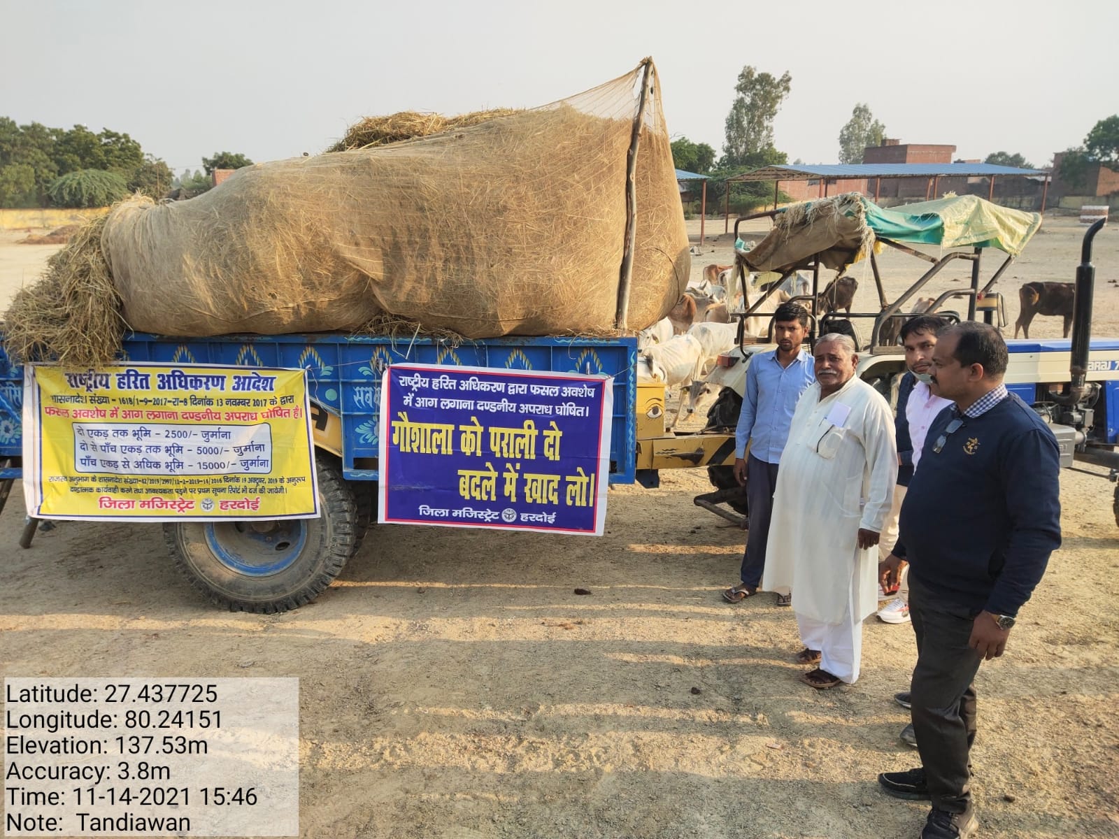 आज ब्लाक टडियावाँ,सांडी,शाहाबाद, कछौना एवं अन्य ब्लाक की गौशालाओं में कुल दस ट्रॉली 100 टन पराली पराली पहुंचाई गई। अब तक किसानों द्वारा 750 टन पराली विभिन्न गौशालाओ को पराली दो खाद लो कार्यक्रम में पहुंचाई गई है।