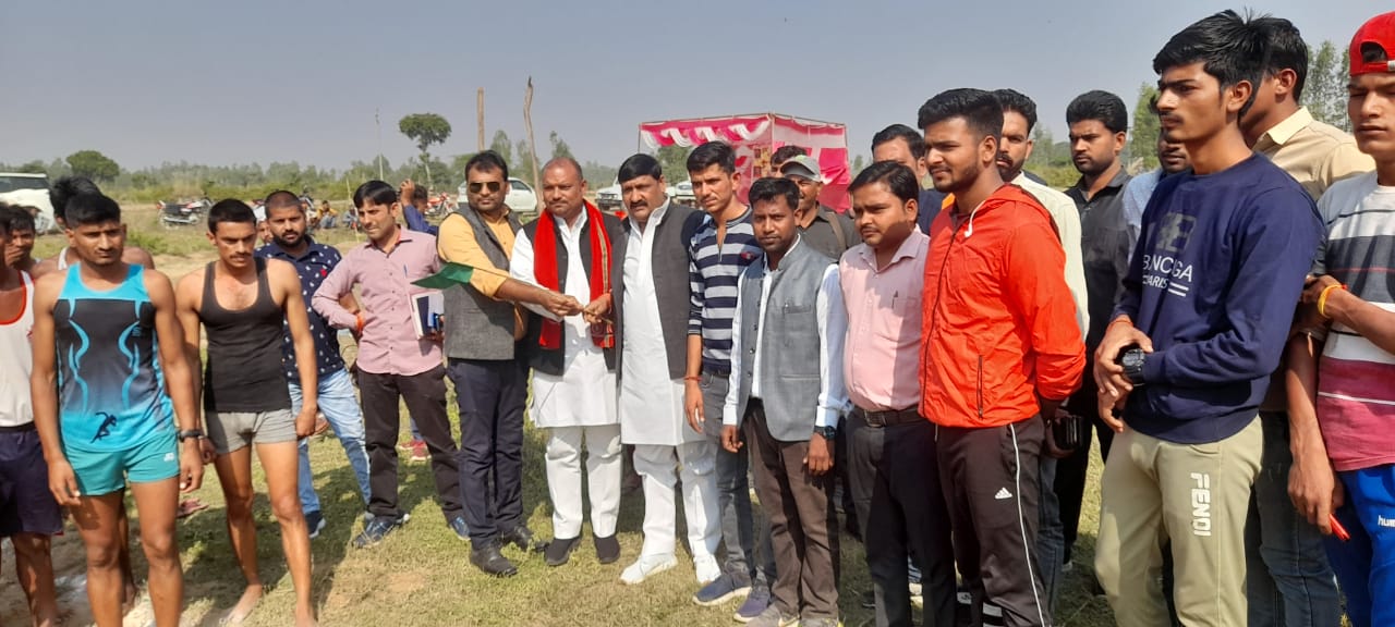 आपको बताते चलें कि दौड़ प्रतियोगिता के आयोजक पुनीत सिंह भोलू ने बताया कि द आदर्श डिफेंस एकेडमी के संचालक सौरभ पाल के साथ मिलकर यह प्रतियोगिता दूसरी बार आयोजित की गई है। आयोजित दौड़ में 70 प्रतिभागियों ने हिस्सा लिया। जवाहर लाल नेहरू कि प्रतिमा पर पुष्प अर्पित कर कार्यक्रम की शुरुआत की। राजवर्धन सिंह राजू ने हरी झंडी दिखाकर प्रतियोगिता की शुरुआत की। 1600 मीटर दौड़ प्रतियोगिता में युवाओं ने अपना पूरा दमखम दिखाया। मीडिया कर्मियों को सम्मान पत्र देकर के सम्मानित किया गया प्रतियोगिता में प्रथम स्थान सचिन सिंह,द्वितीय प्रदीप कुमार,तृतीय अभिषेक पांडेय रहे। जिन्हें ट्रॉफी,स्मृति चिन्ह,मेडल देकर सम्मानित किया गया व अन्य 10 युवाओं को प्रशस्ति,सील्ड दिया। इस दौरान मुख्य अतिथि राजू सिंह राजबर्धन,मुकुल सिंह,डॉ प्रतीक द्विवेदी,अनिलेश,रतनदीप पाण्डेय ने युवाओं को प्रशस्ति पत्र व ट्राफी देकर उत्साहवर्धन किया और उन्हें आगे बढ़ने के लिए प्रेरित किया। वहीं श्री राजू ने कहा कि भारत में प्रतिभा ग्रामीण क्षेत्रों में निवास करती है,लेकिन नेताओं से लेकर प्रशासन इस ओर ध्यान नही देता,जिससे ग्रामीण प्रतिभा कहीं न कहीं आगे नही बढ़ पा रही। इस मौके पर मुख्य अतिथि राजू सिंह राजवर्धन, विशिष्ट अतिथि अनिल सिंह बीरू,ब्लॉक अध्यक्ष अनिलेश सिंह, व्यवस्थापक पुनीत सिंह भोलू द आदर्श डिफेंस एकेडमी संचालक सौरभ पाल, रघुवीर सिंह आदि कई लोग उपस्थित रहे।