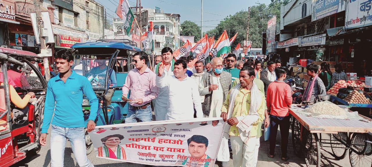 हरदोई।कांग्रेस ने प्रतिज्ञा पदयात्रा के आज सातवें दिन आठों विधानसभा में पद यात्रा एवं नुक्कड़ सभाओं का आयोजन किया गया।