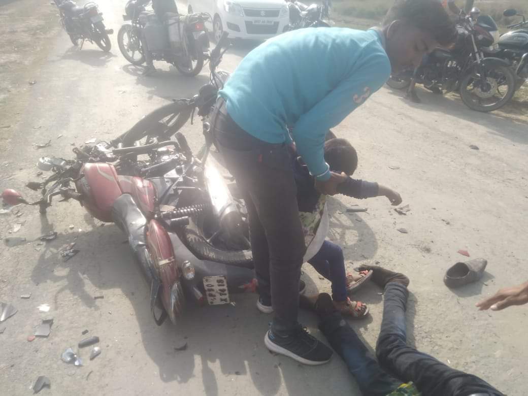 रदोई टड़ियावां थाना क्षेत्र के गोपामऊ मार्ग जपरा तिराहा पर दो बाइको मे आमने -सामने से जोरदार भिड़ंत, मासूम सहित दोनों बाइको पर 5 लोग थे सवार, हादसे में बाइक सवार दो लोगों की मौत हो गयी घटना में एक बाइक पर सवार बाप -बेटे की मौत, सूचना पर पहुंची पुलिस ने मासूम सहित तीन घायलों को जिला अस्पताल भेजा, जहां गंभीर घायल एक युवक लखनऊ रेफर, पुलिस ने मृतक बाप -बेटे के शव को कब्जे में लेकर पोस्टमार्टम के लिए भेजा, मौत व घायलों की सूचना से परिजनों में मचा कोहराम, टड़ियावां थाना क्षेत्र के गोपामऊ मार्ग जपरा तिराहा का मामला।