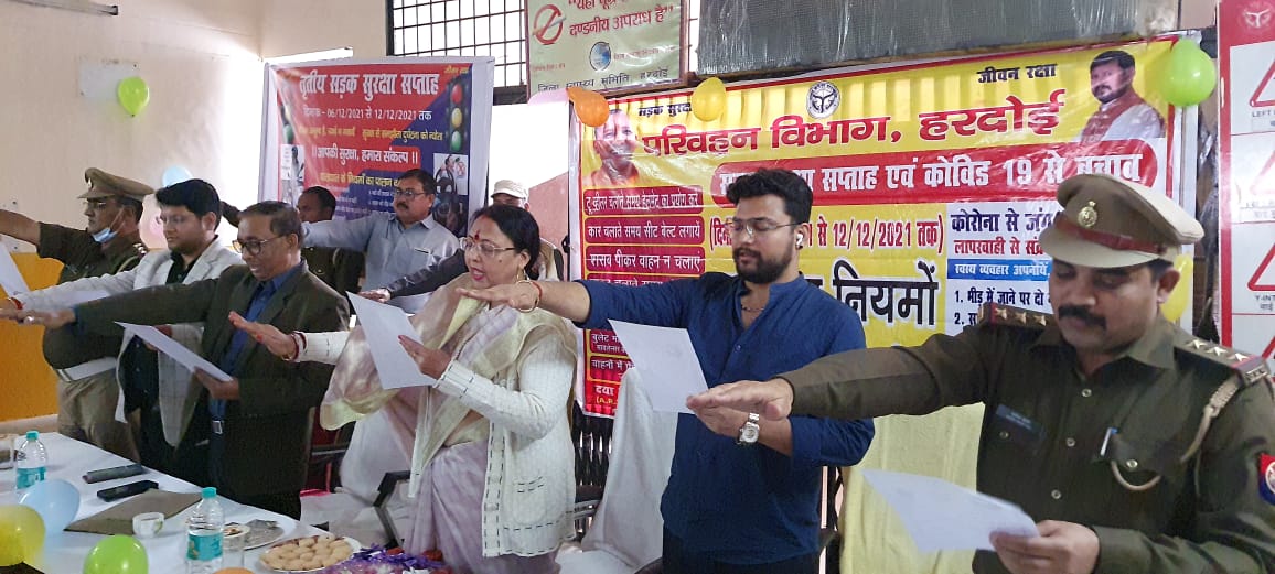 हरदोई।सहायक सम्भागीय परिवहन कार्यालय हरदोई मे परिवहन विभाग हरदोई द्वारा सड़क सुरक्षा सप्ताह पर जागरूकता कार्यक्रम आयोजित किया गया। कार्यक्रम की मुख्य अतिथि अध्यक्ष जिला पंचायत हरदोई प्रेमावती ने क्षेत्रवासियों को यातायात नियमों का पालन करने की शपथ दिलाई।