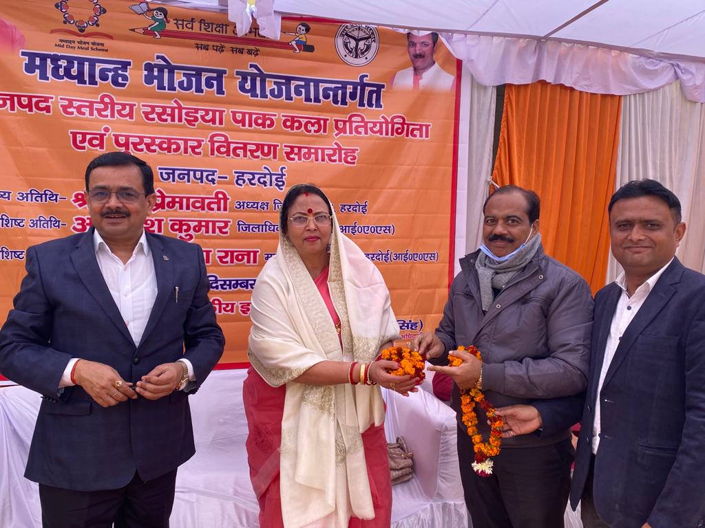 ज़िला पंचायत अध्यक्ष प्रेमावती ने बाज़ी मारने वाली रसोइयों को पुरस्कृत करते हुए उनका हौसला बढ़ाया।