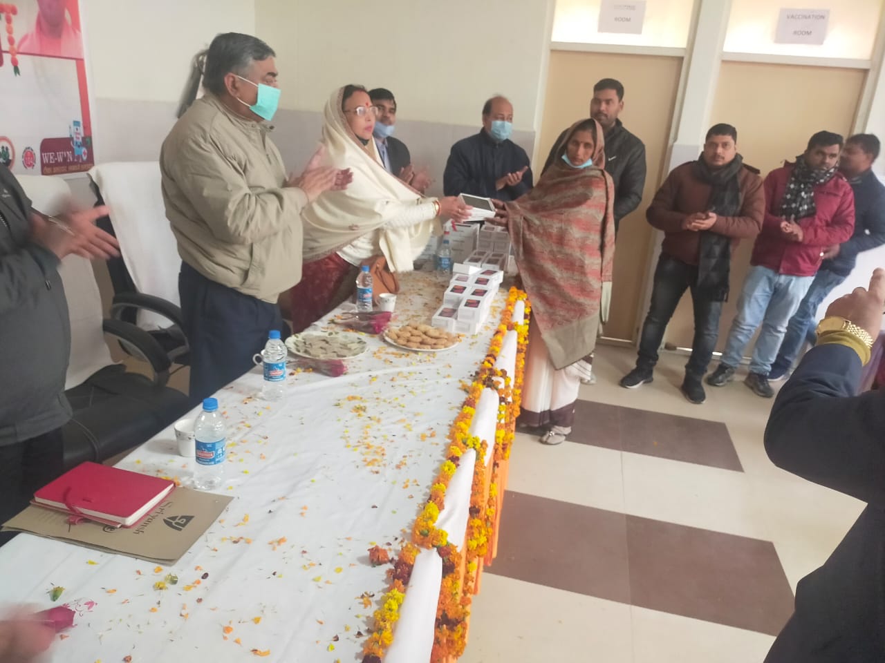 इस मौके पर 100 शैय्या संयुक्त चिकित्सालय के चिकित्सा अधीक्षक डॉ. मनोज श्रीवास्तव, अपर मुख्य चिकित्सा अधिकारी डा. सुशील कुमार, जिला स्वास्थ्य शिक्षा एवं सूचना अधिकारी प्रेम चंद यादव, जिला कार्यक्रम प्रबंधक सुजीत कुमार, जिला समुदाय प्रक्रिया प्रबंधक शिव कुमार सिंह, प्रधानमंत्री मातृ वंदना योजना के जिला समन्वयक सच्चिदानंद मिश्रा सहित बड़ी संख्या में आशा कार्यकर्ता उपस्थित रहीं।मोबाइल फोन पाकर आशा कार्यकर्ताओं के चेहरे पर खुशी देखने को मिली।