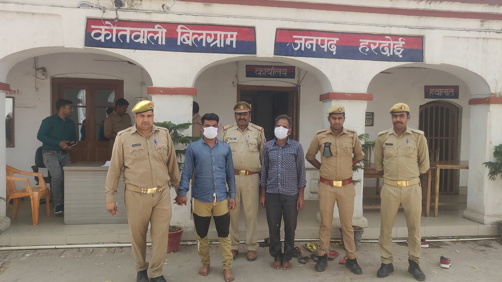 बिलग्राम हरदोई ॥ पुलिस ऩे बीते सोमवार क़ी रात्रि मे विवाहिता क़ी हुई हत्या के आरोप मे पिता पुत्र को गिरफतार कर जेल भेजा है । ज्ञात हो पिता पुत्र पर दहेज हत्या का मुकदमा दर्ज कराया गया था ।