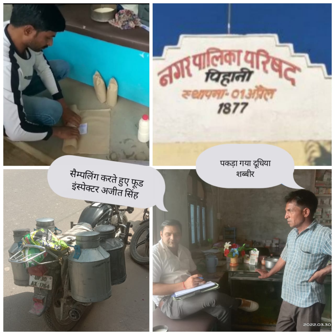 बीते बुधवार उन्होंने पिहानी में दूधियों को पकड़ कर सैम्पल भी लिए थे फिर भी दूधियों पर कोई असर नहीं पड़ा तो एण्टी करप्शन इण्डिया टीम के पिहानी सदस्य डाॅ शवीह अब्बास की शिकायत पर ठीक एक हफ्ते बाद कल बीते बुधवार को पुनः छापेमारी की गई।जिसमें तीन दूधियों के दूध की सैम्पलिंग की गई।सबसे खराब दूध शब्बीर पुत्र हामिद निवासी छुट्टूपुरवा का मिला।दूध सैम्पलिंग के बाद फूड इन्स्पेक्टर अजीत सिंह ने कस्बे में कोल्ड ड्रिंक व अन्य कई खाद्य सामग्री की दुकानों पर भी छापेमारी की।इस दौरान पत्रकार वार्ता में फूड इन्स्पेक्टर अजीत सिंह ने भी कहा कि यह दूध देखने में ही गुणवत्ताहीन है यह तो मानव जीवन के लिए वाकई घातक है।दरअसल यहाँ वर्षों से मिलावटी दूध और बनावटी मट्ठे का गोरखधंधा चल रहा है।जिससे प्राणघातक कैंसर और हार्ट ब्लाॅकेज एवं पीलिया जैसे रोगों ने पैर पसार रखे हैं। एण्टीकरप्शन इण्डिया टीम के पिहानी सदस्य ने जाँच और कार्रवाई बावत आवाज उठाई और इस जहरीले केमिकल युक्त दूध से जन-मानस पर प्राणघातक हमले करने की खबर का प्रकाशन कराया।तब जाकर नगर में फूड इन्स्पेक्टर अजीत सिंह अपने सहायक दीपक मिश्रा को लेकर सक्रियता से जाँच पड़ताल में जुटे।मिलावटखोरों और दूधियों में मचा हड़कम्प मचा है।